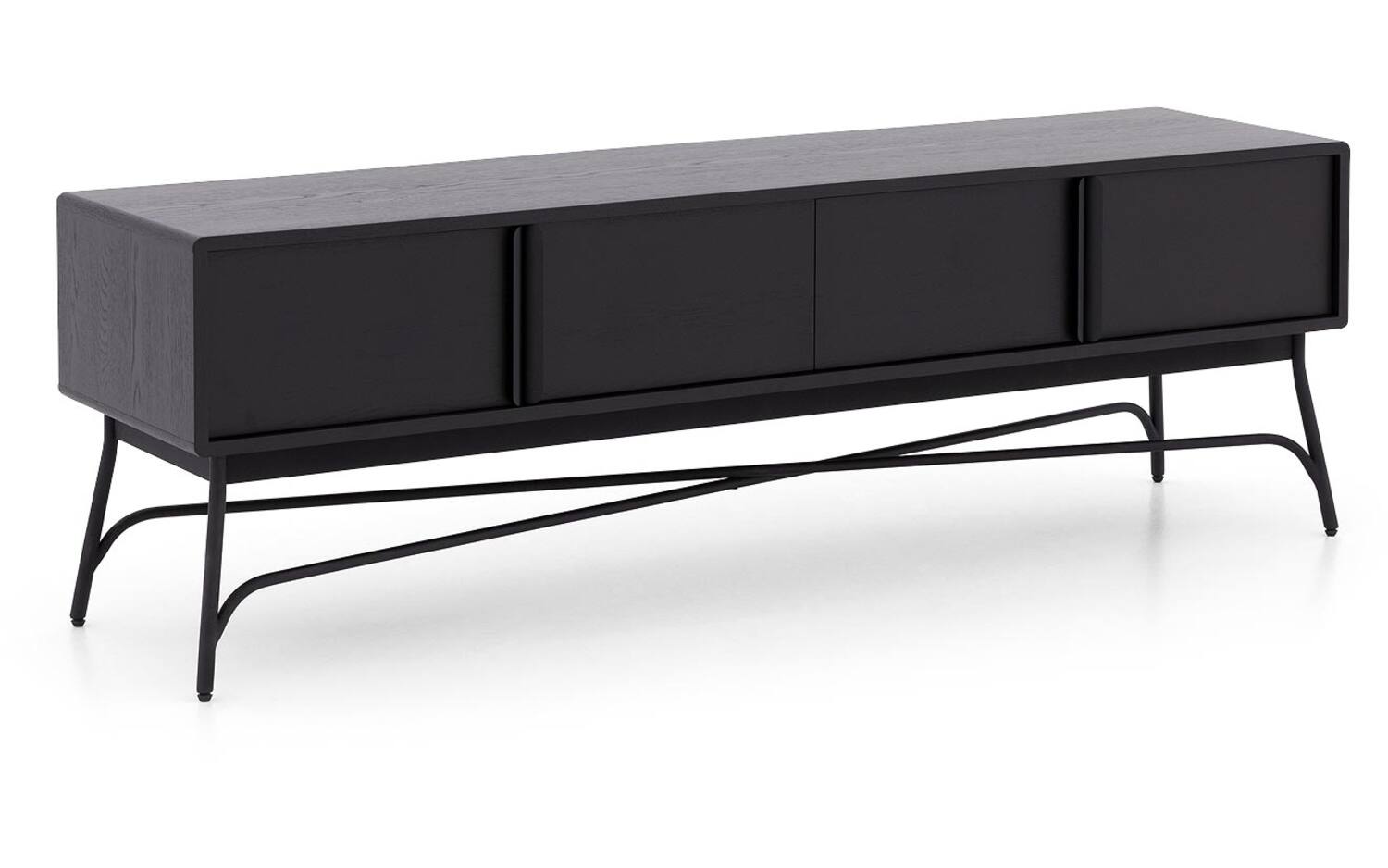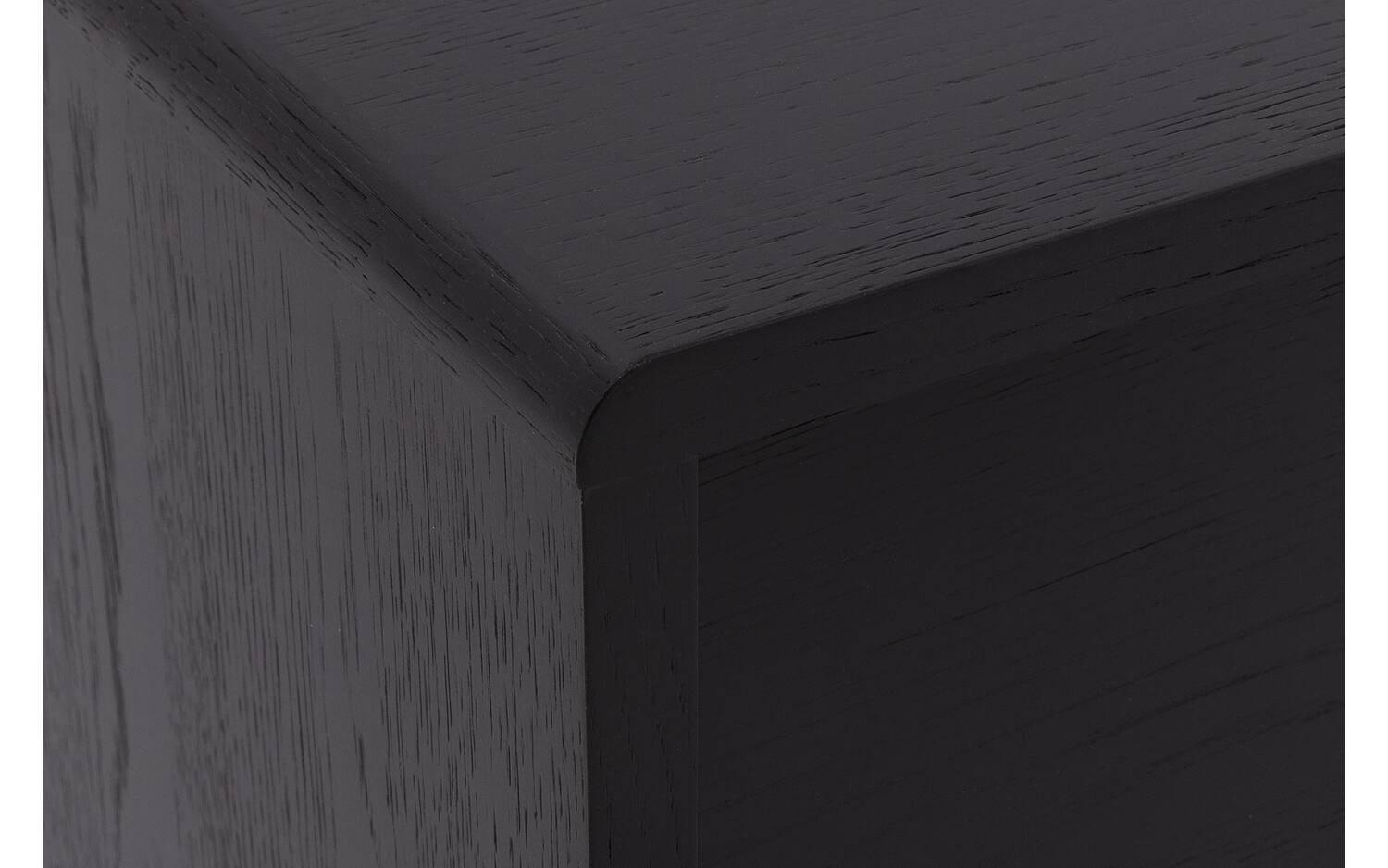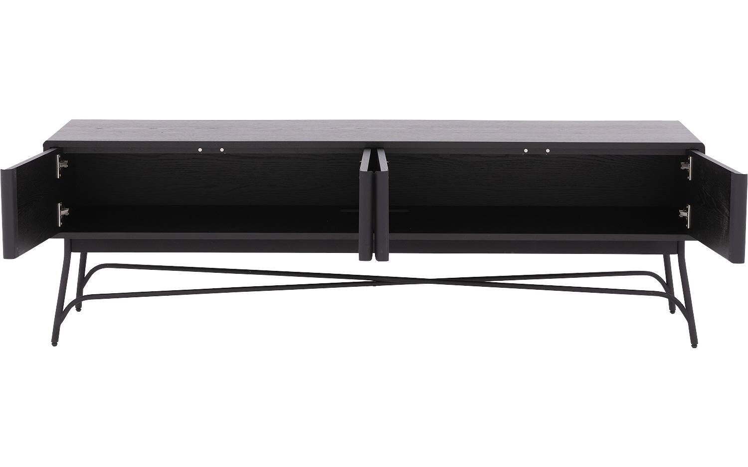 De krachtige zwarte lak op het eiken fineer geeft TV meubel Discover zijn karakteristieke uitstraling. Alle vier de vakken zijn bereikbaar via deuren met handgrepen, zodat je gemakkelijk bij je apparatuur kunt. Het soft closing systeem beschermt het meubel tegen harde klappen en zorgt voor een stille werking.