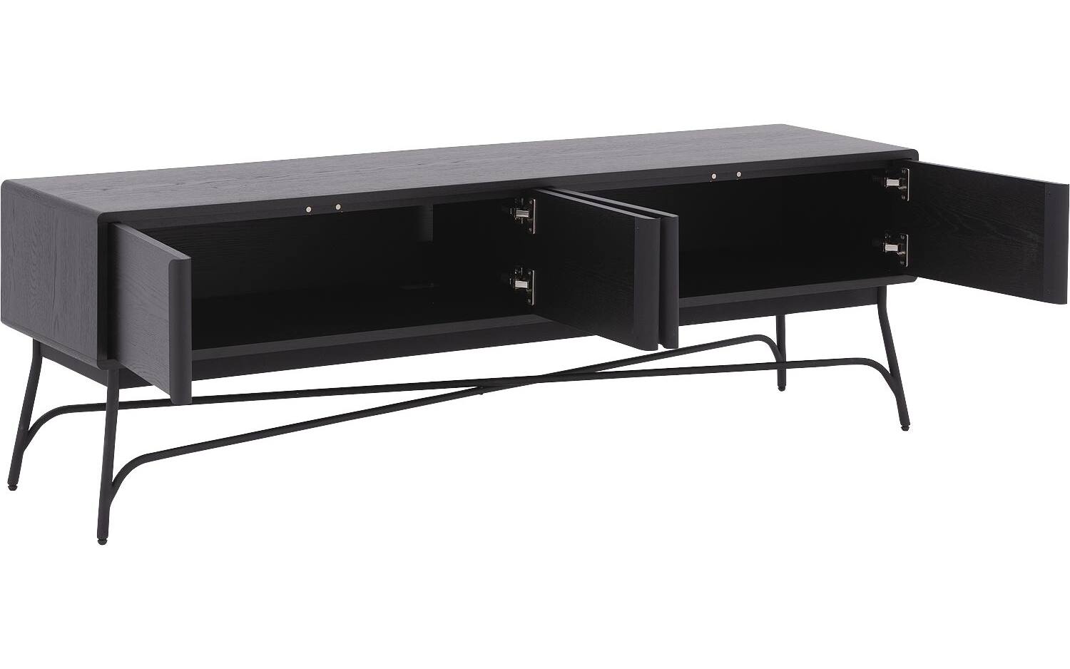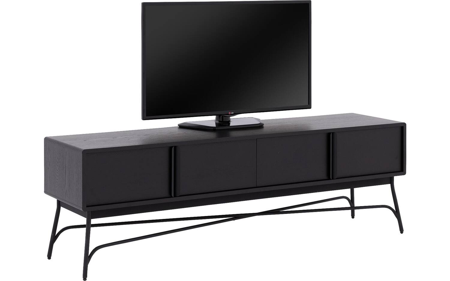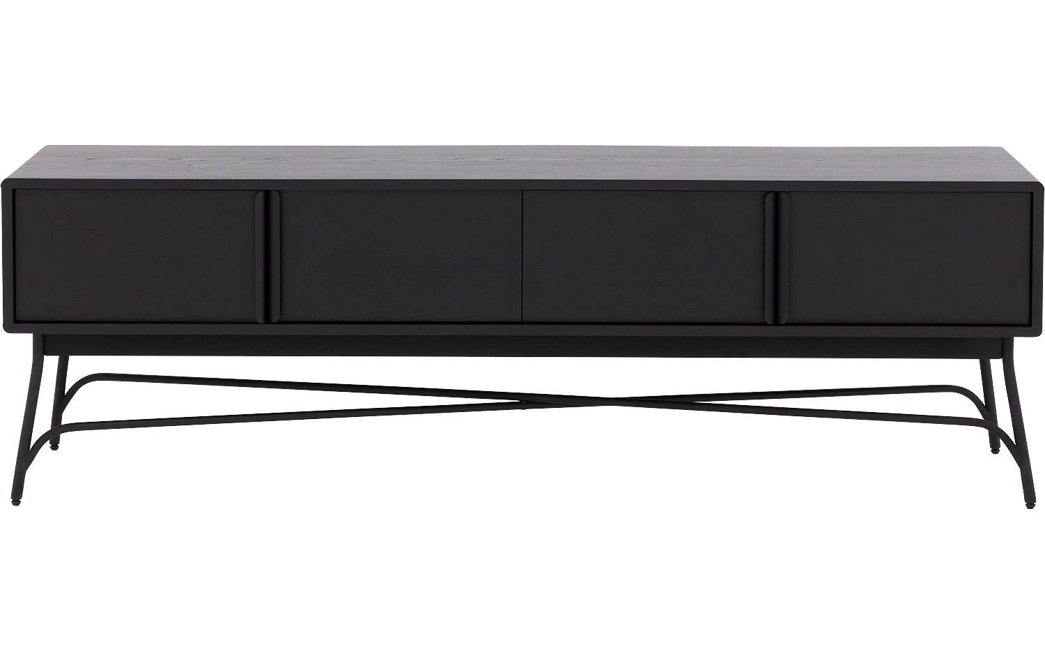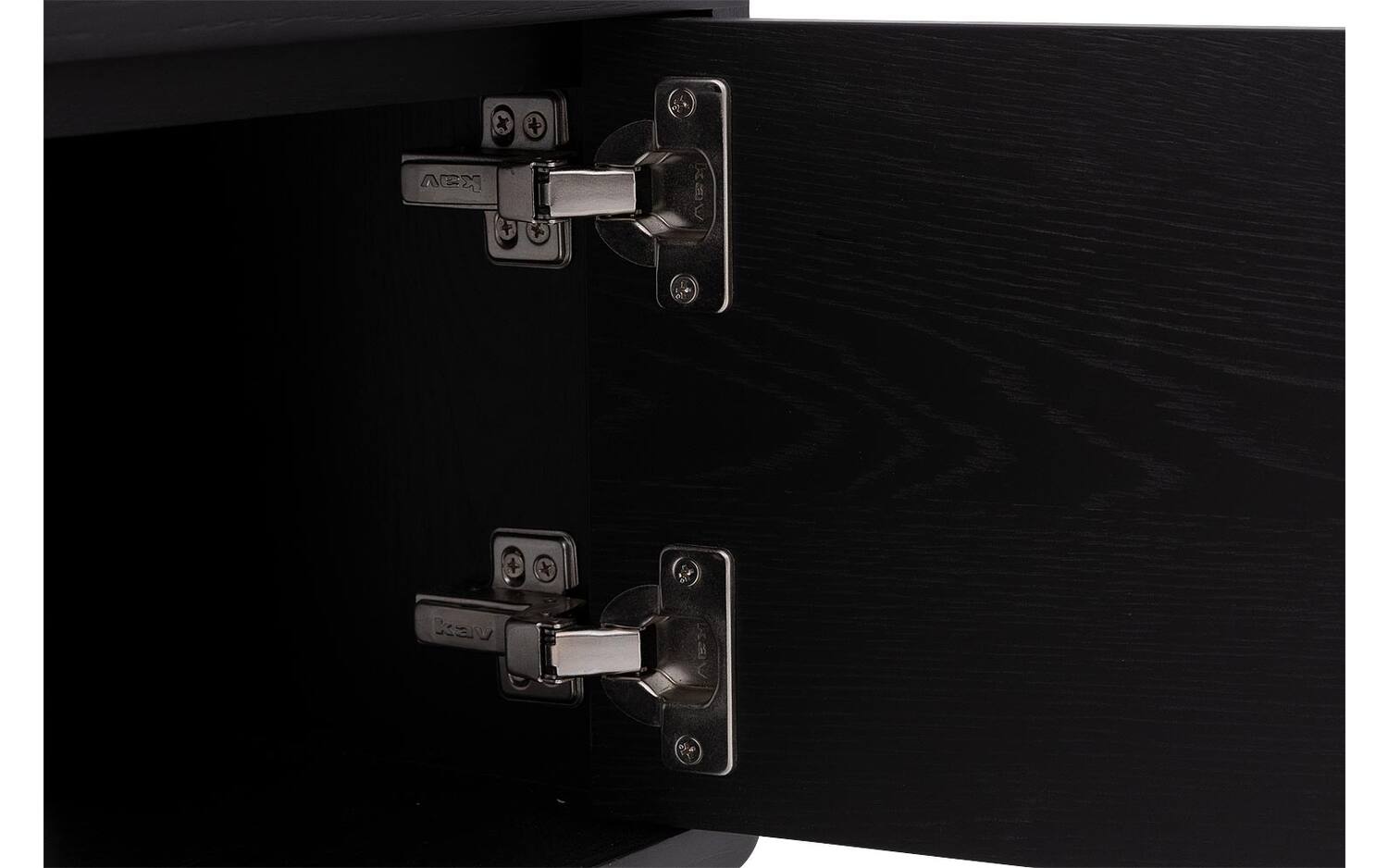 De krachtige zwarte lak op het eiken fineer geeft TV meubel Discover zijn karakteristieke uitstraling. Alle vier de vakken zijn bereikbaar via deuren met handgrepen, zodat je gemakkelijk bij je apparatuur kunt. Het soft closing systeem beschermt het meubel tegen harde klappen en zorgt voor een stille werking.
