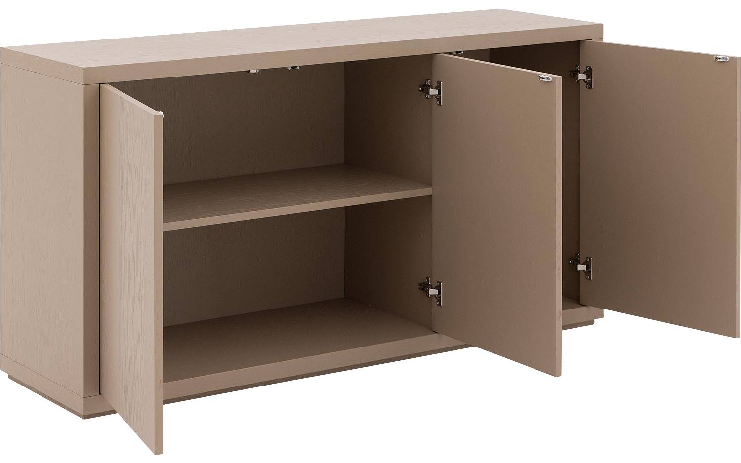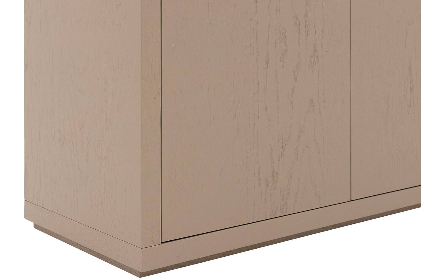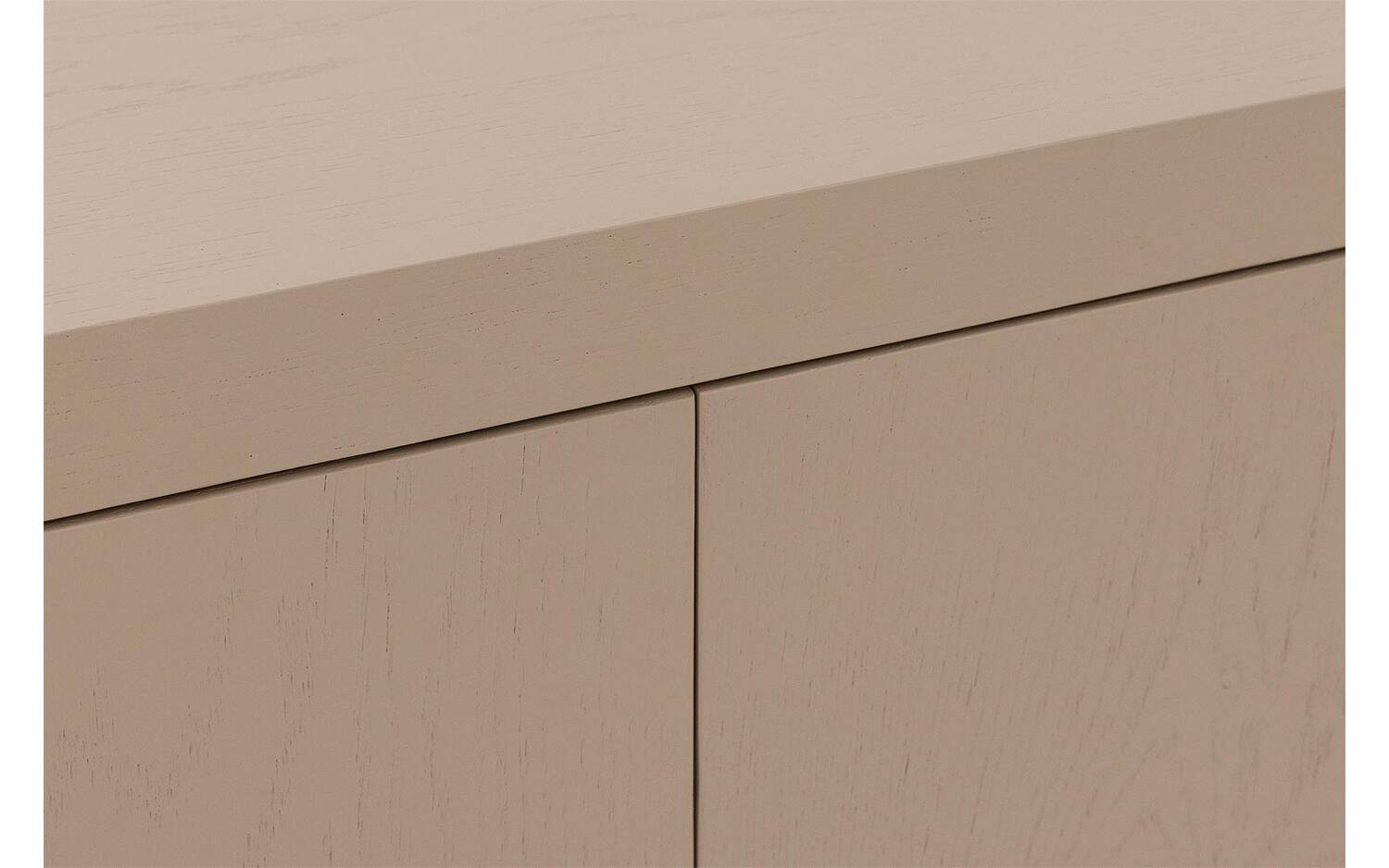 Dressoir Barcelona combineert tijdloze elegantie met praktische opbergruimte in een warme grijsbeige tint. Het push-to-open systeem zorgt voor strakke lijnen zonder zichtbare handgrepen, terwijl het hoogwaardige eiken een natuurlijke warmte uitstraalt. Een verfijnd meubel dat direct karakter toevoegt aan jouw woonruimte.