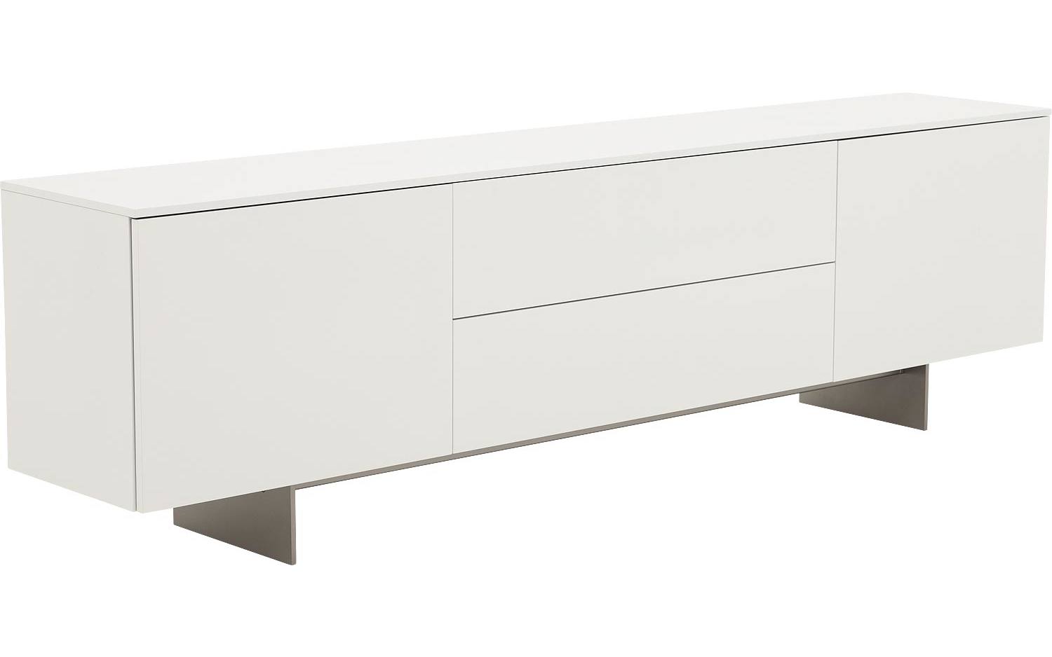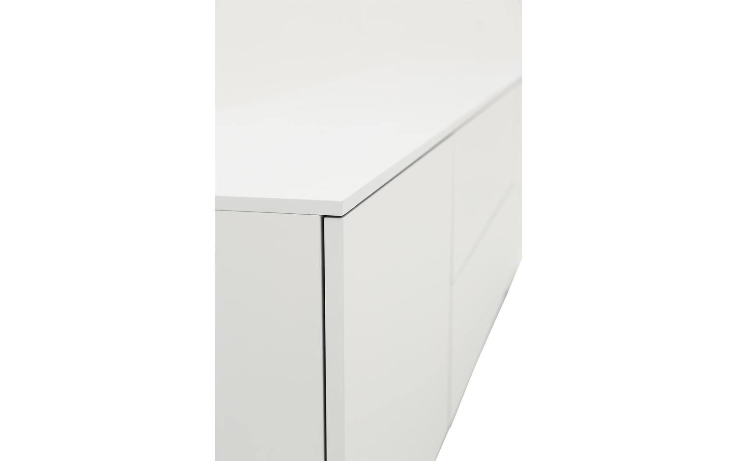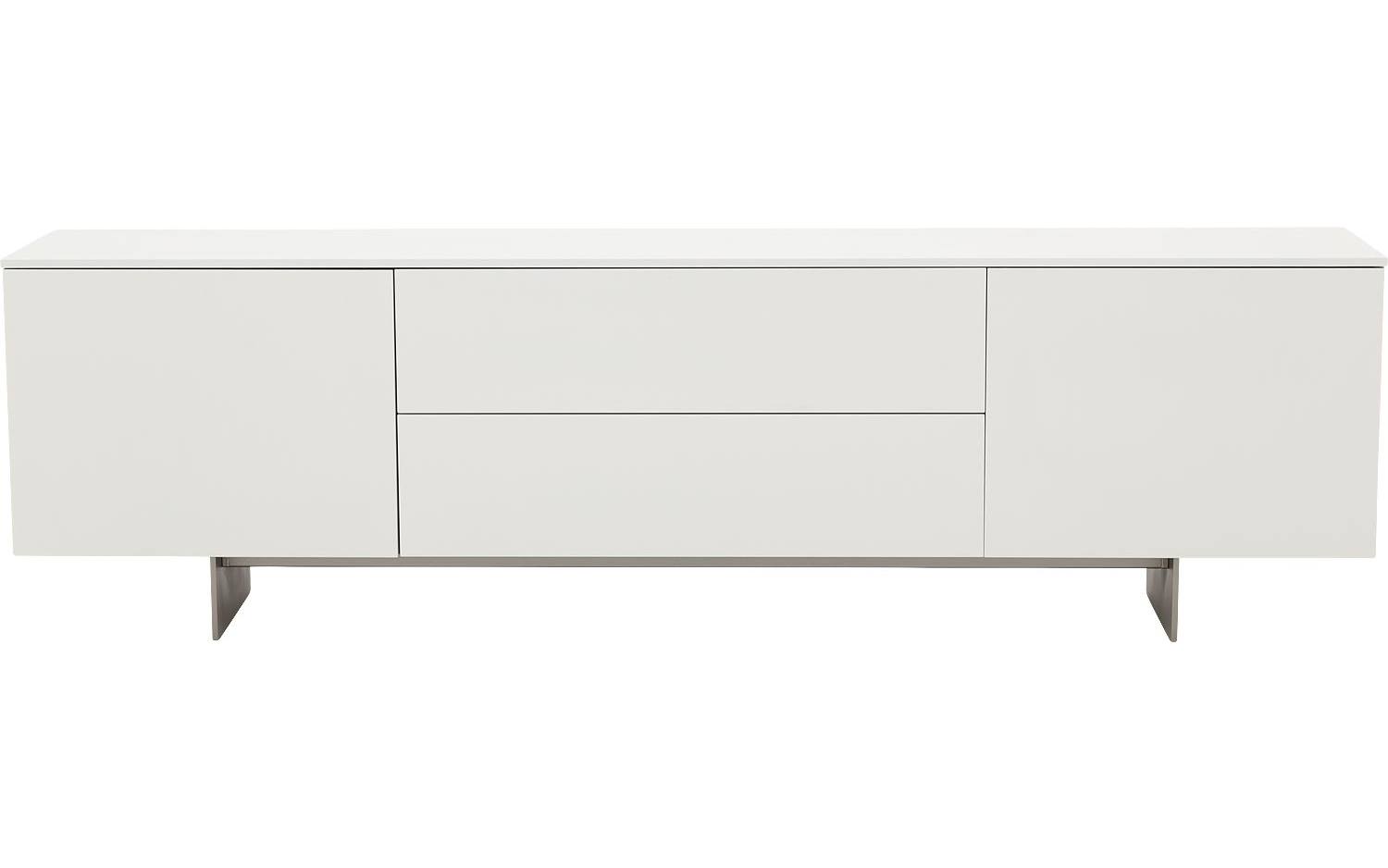 Dit witte dressoir met moderne uitstraling geeft je woonkamer direct een frisse, opgeruimde uitstraling. De aluminiumkleurige poten zorgen voor een stoere touch en geven het meubel een luchtig karakter. Perfect voor wie houdt van strakke lijnen en een tijdloos design.