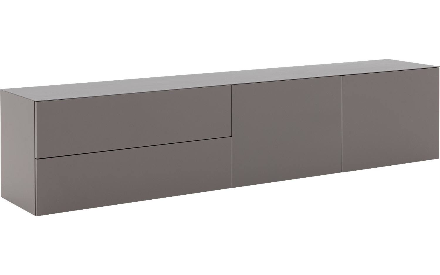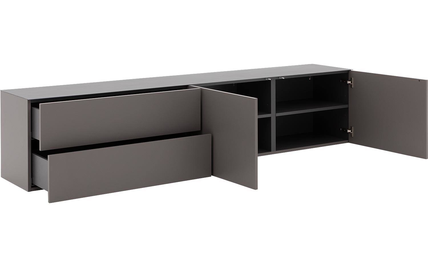 Dressoir Monza straalt moderne elegantie uit met zijn strakke kwartsgrijs finish. De zijdeglans afwerking geeft het MDF een verfijnde uitstraling die perfect past in hedendaagse interieurs. Door de zwevende montage krijgt je ruimte extra visuele ruimte en een luchtig effect.