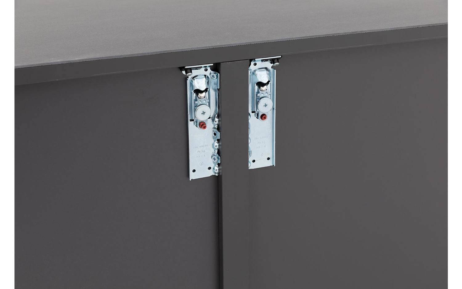 De zijdeglans afwerking van dressoir Monza biedt niet alleen een elegante uitstraling, maar beschermt het MDF ook effectief tegen dagelijkse invloeden zoals kringen en vlekken. Het push-to-open systeem zorgt voor een strakke vormgeving zonder handgrepen.