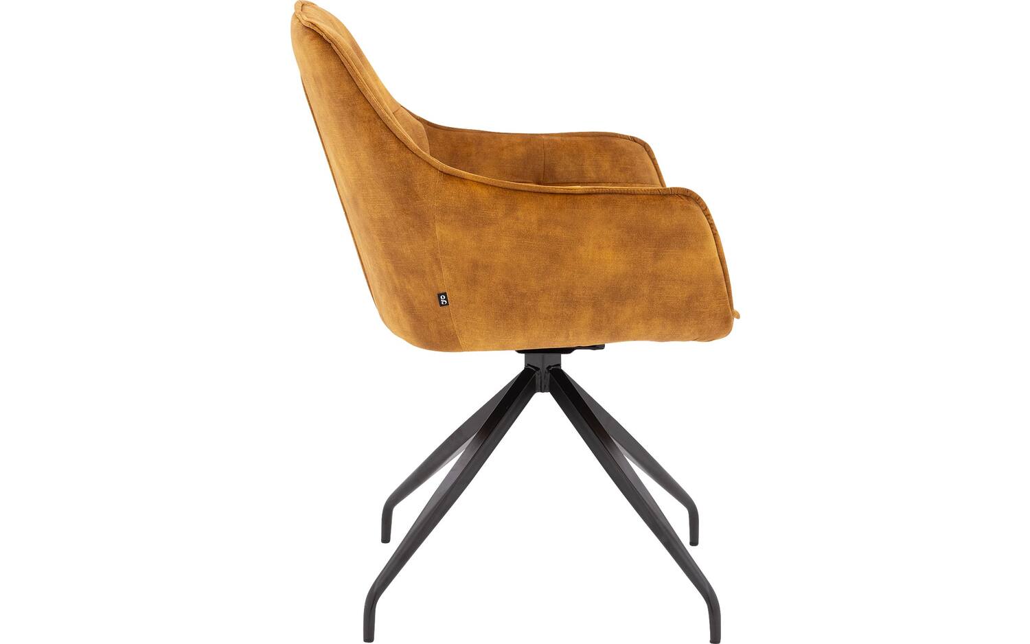 Gouden eetkamerstoel Alba met armleuning haalt een vleugje luxe in huis voor urenlang comfortabel tafelen. Deze draaibare eetkamerstoel is bekleed met zacht velours en is een echte blikvanger aan je eettafel...