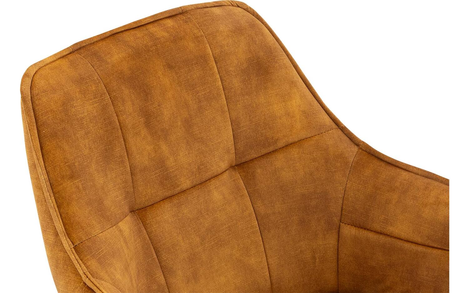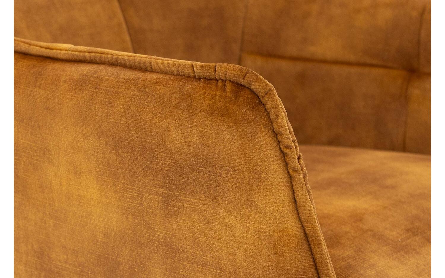 Stijlvolle details van deze gouden velours eetkamerstoel
