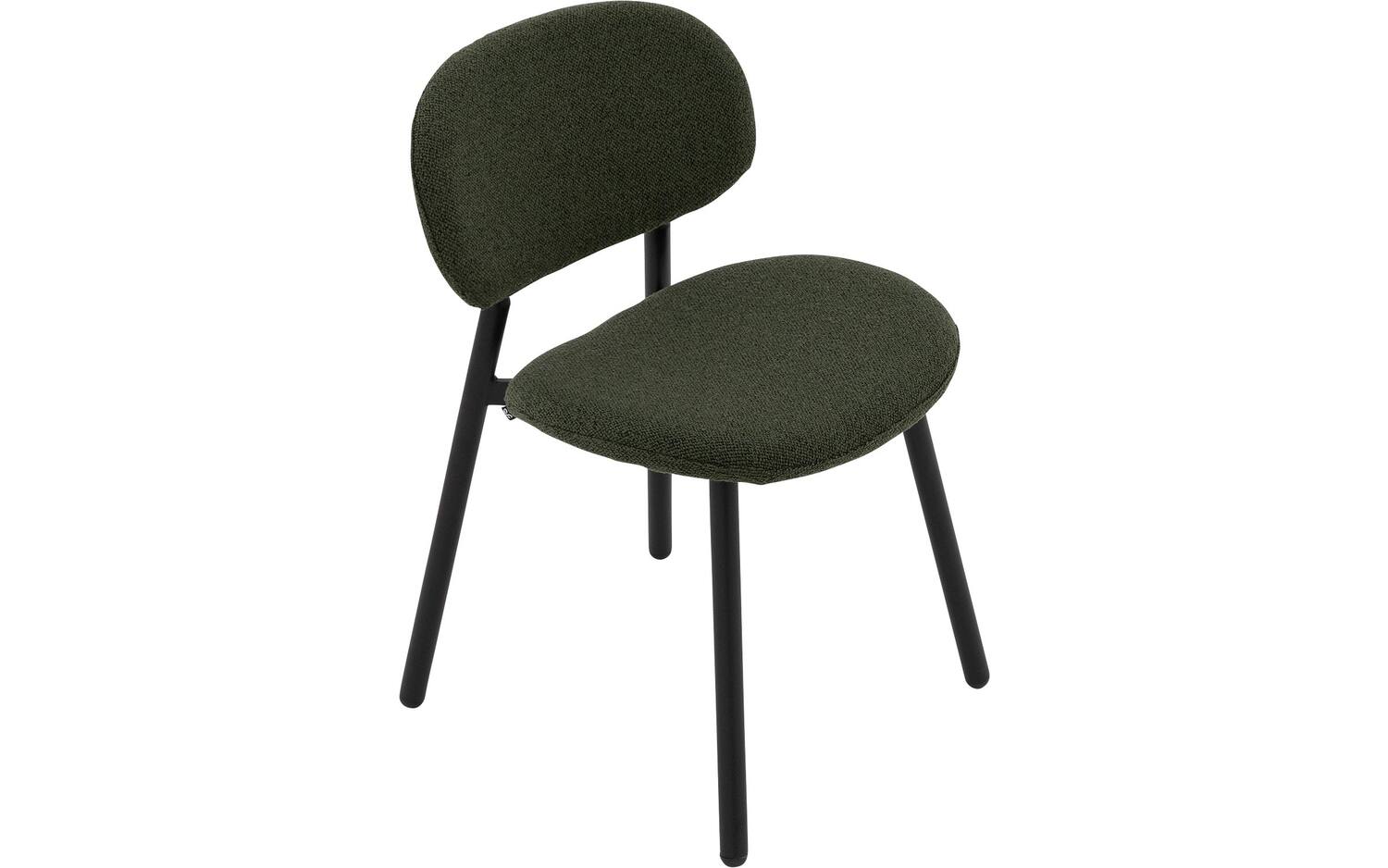 Het zwarte matte frame vormt een mooi contrast met de donkergroene bekleding en zorgt voor stabiliteit tijdens het gebruik. De strakke lijnen en vaste stoffering maken Change tot een moderne stoel die in diverse interieurstijlen prachtig tot zijn recht komt.