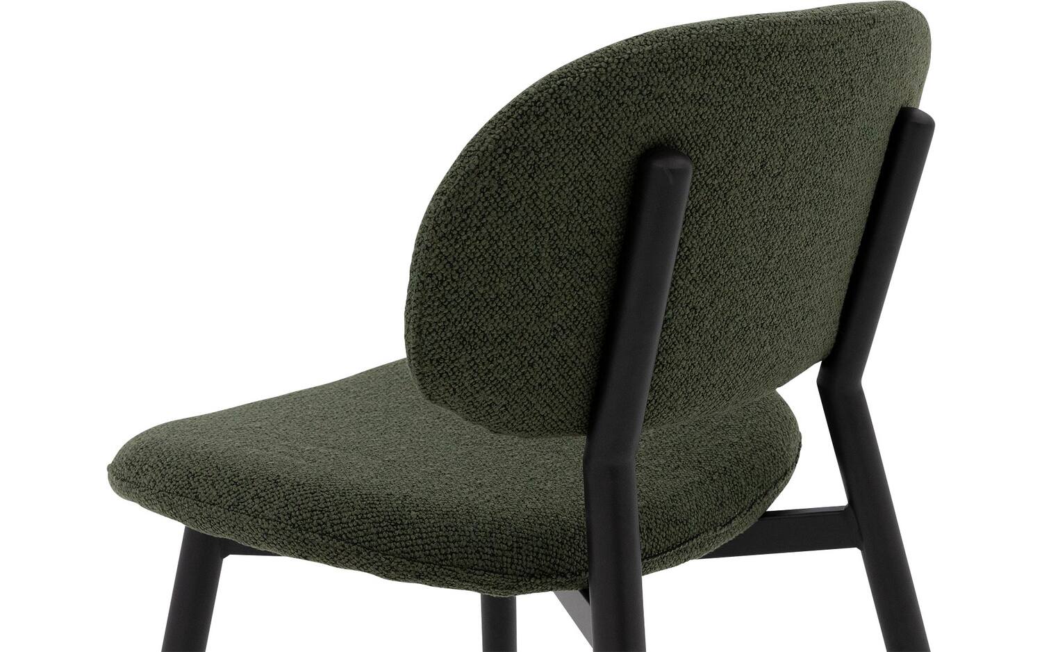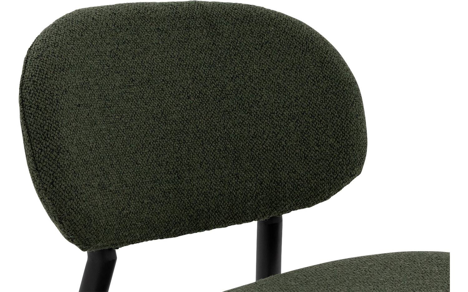 Stijlvolle details van deze groene eetkamerstoel zonder armleuning