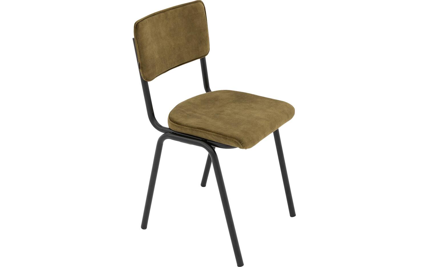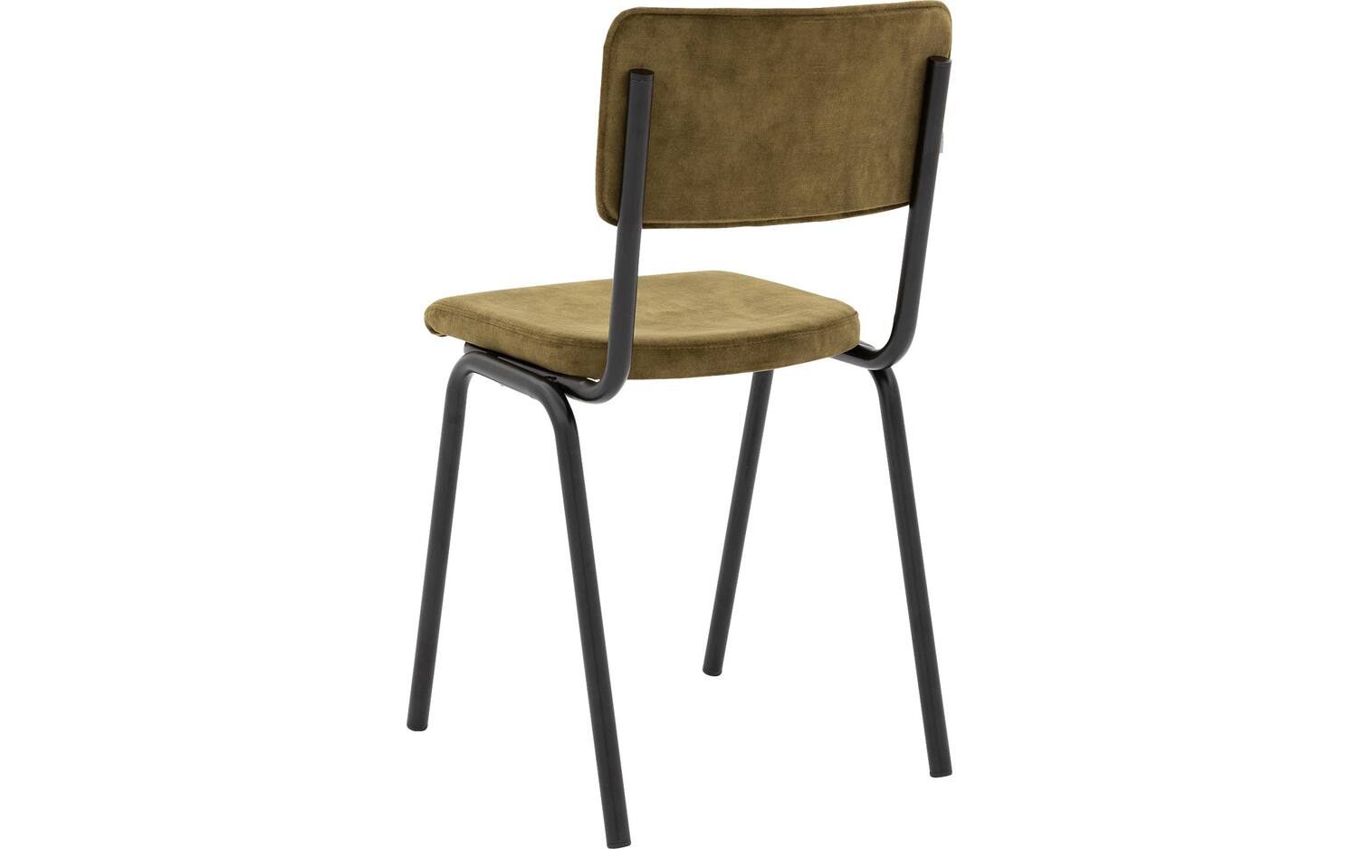 Groene eetkamerstoel Chaplin zonder armleuning brengt retro design en stijl naar je eethoek. Deze fluwelen eetstoel doet denken aan de klassieke schoolstoel, maar dan in een modern jasje! De stevige zitting met hoogwaardige schuimvulling...