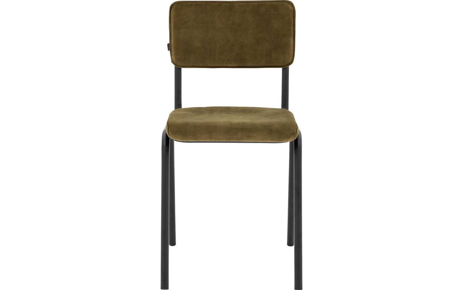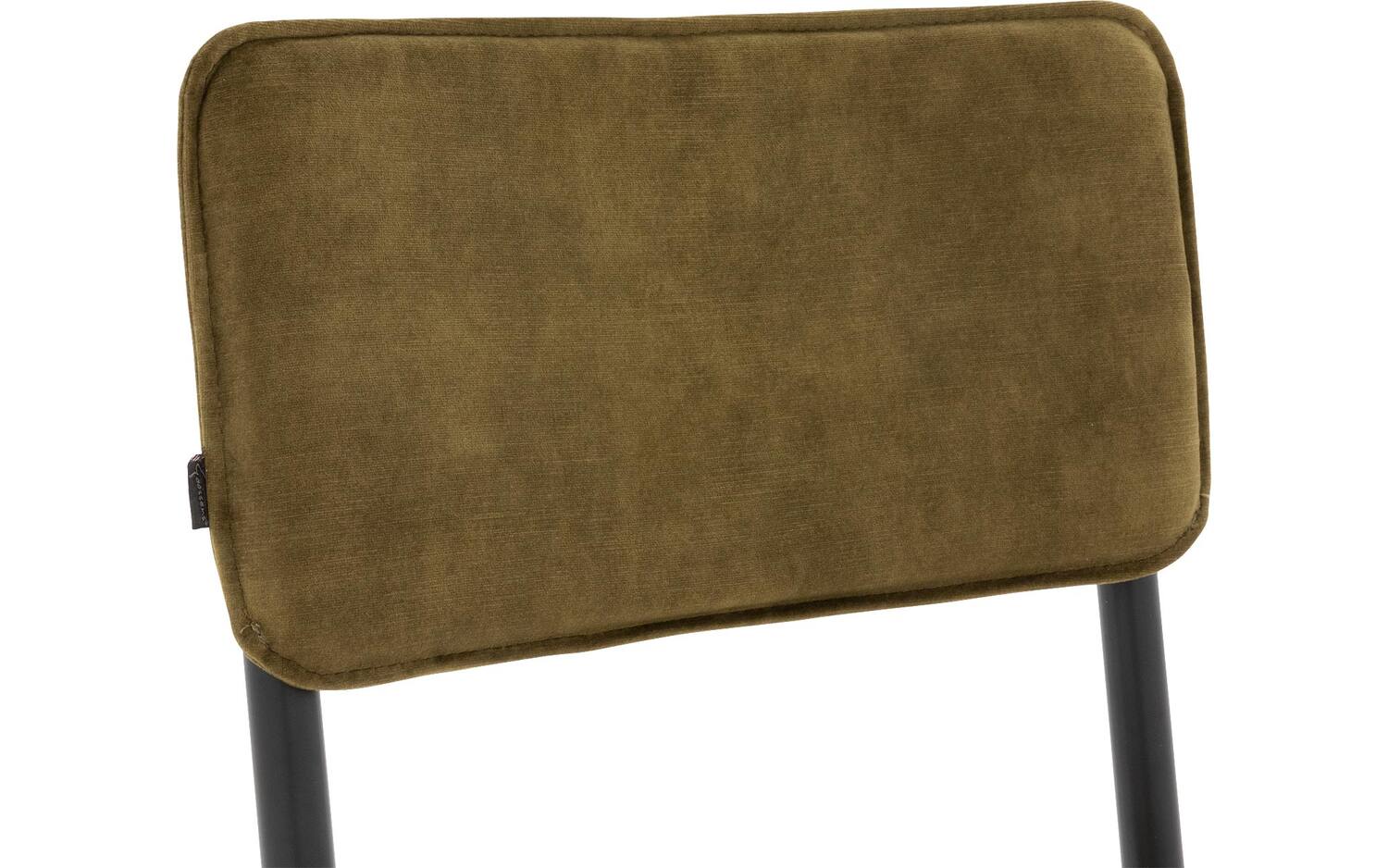 Eetkamerstoel Chaplin valt op door zijn slanke zwarte metalen poten die een fraai contrast vormen met de mosgroene velours bekleding. Het velvet materiaal is niet alleen zacht en aangenaam om op te zitten, maar heeft ook een slijtvaste kwaliteit die zorgt voor jarenlang plezier.