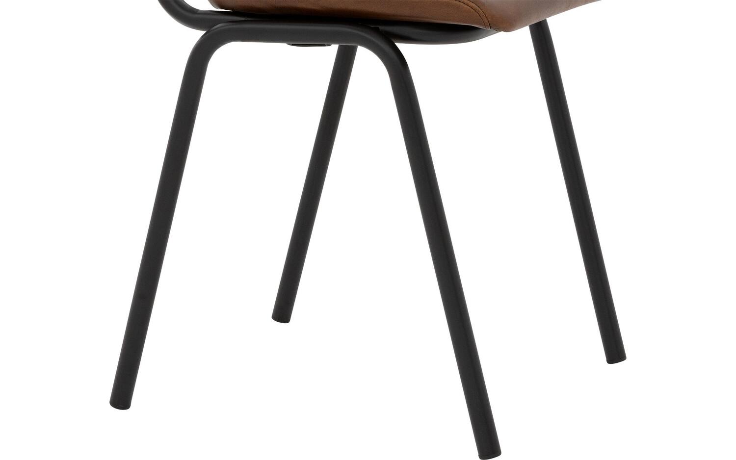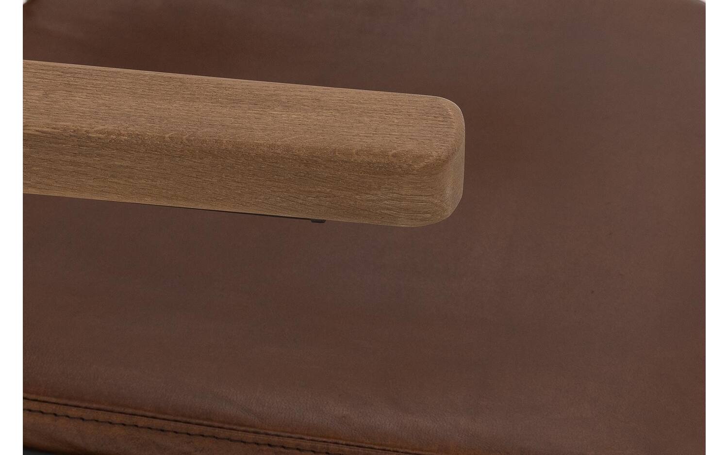 Stijlvolle details van deze cognac leren eetkamerstoel