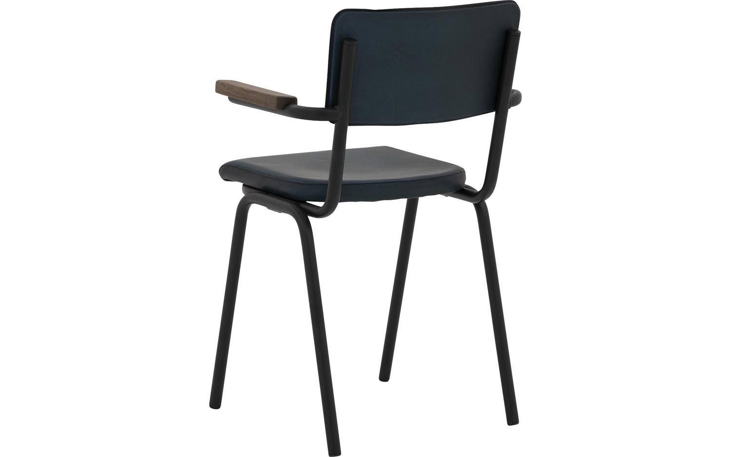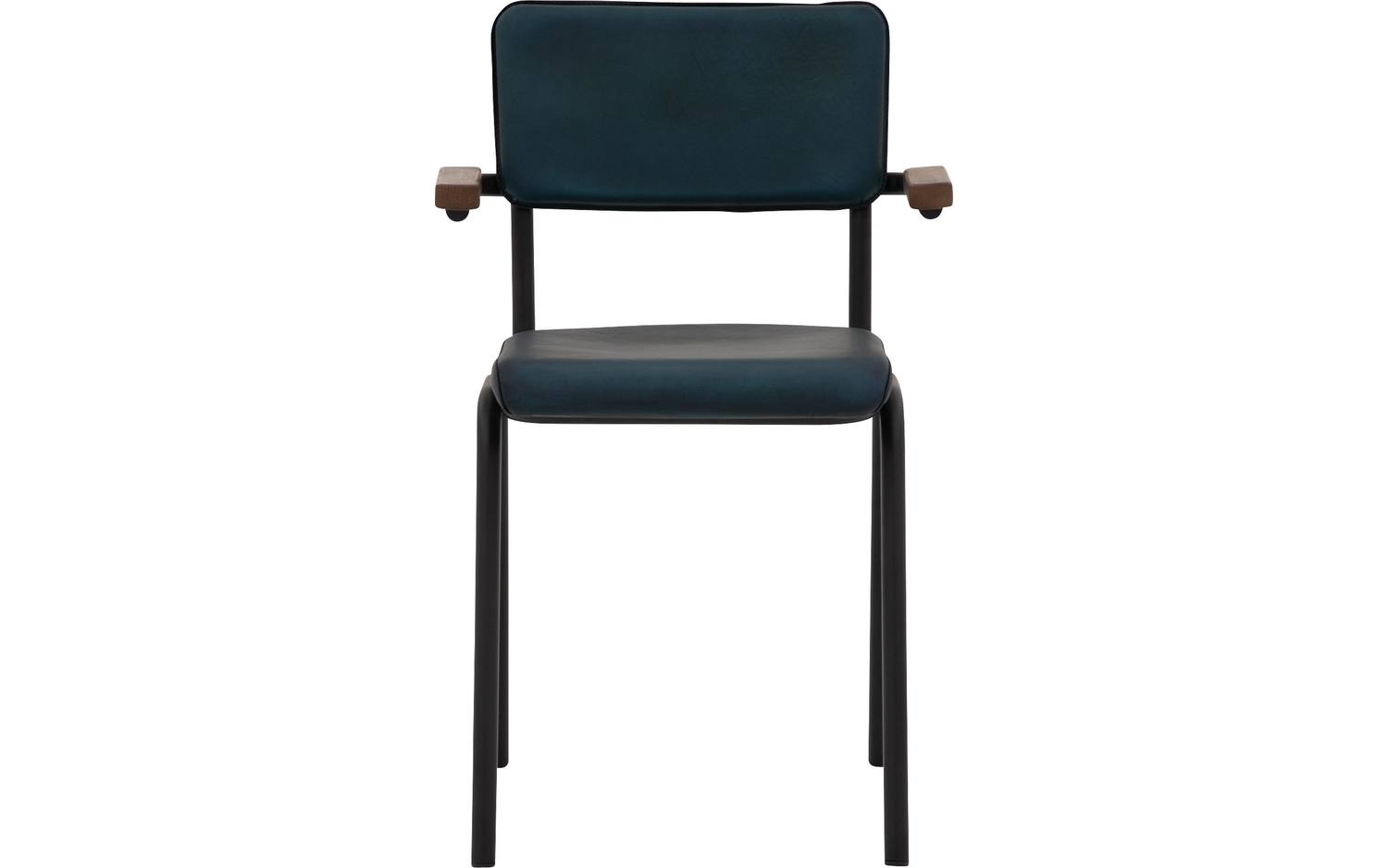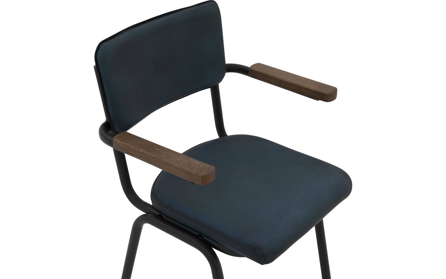 Blauwe eetkamerstoel Chaplin met armleuning brengt een vleugje nostalgie naar je eethoek. Deze leren eettafelstoel met retro design doet denken aan de klassieke schoolstoel, maar dan in een modern jasje...