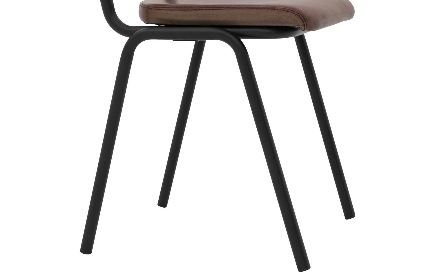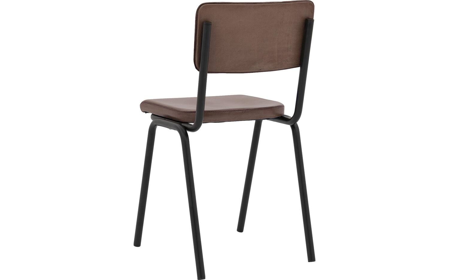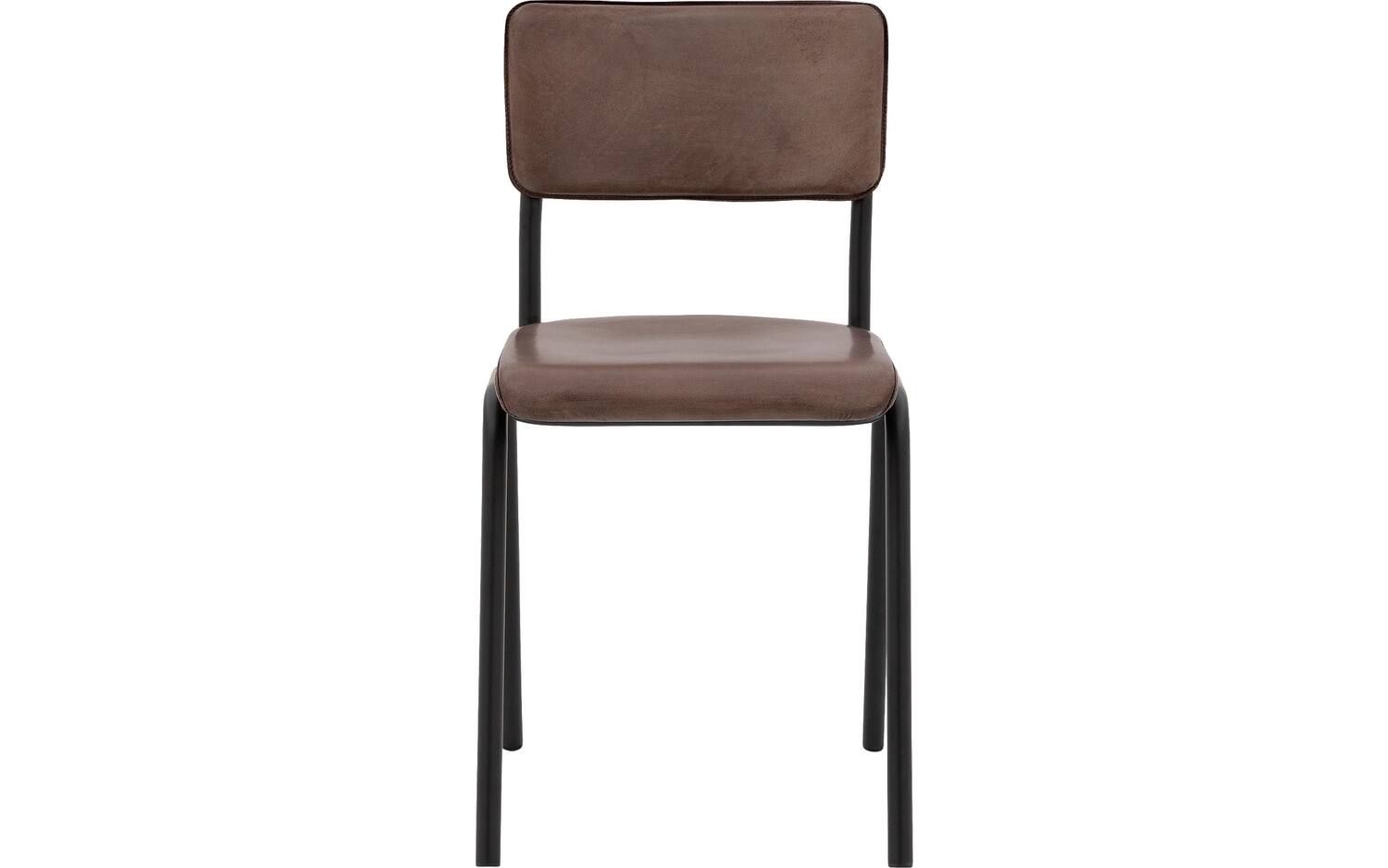 Bruine leren eetkamerstoel Chaplin zonder armleuning brengt een vleugje nostalgie in jouw interieur. Het retro design doet denken aan de klassieke schoolstoel – jeugdsentiment in een modern jasje! Met zijn stevige zitting voorzien van hoogwaardige schuimvulling en prachtige lederen bekleding geeft Chaplin jouw eethoek direct een stoere, industriële uitstraling. De vintage look van het outdoor leer wordt met gebruik alleen maar mooier.