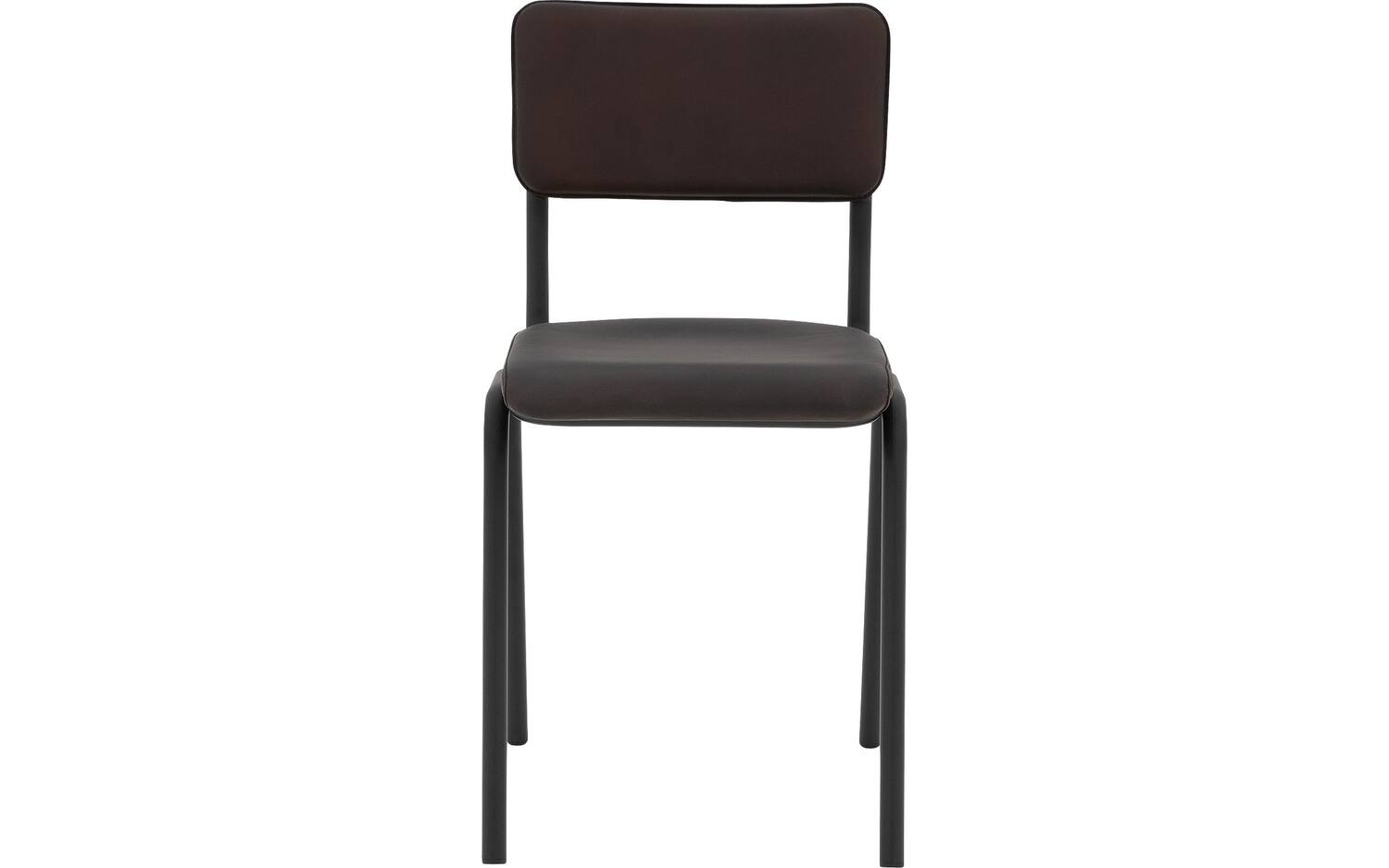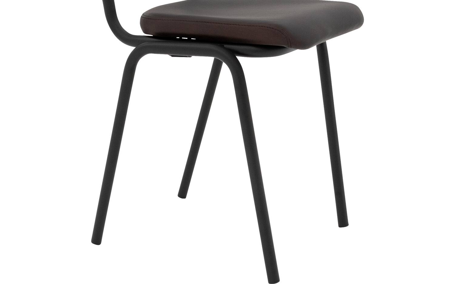 Het zwart matte frame vormt een mooi contrast met het bruine leer en maakt deze stoel tot een echte eyecatcher. De vaste stoffering zorgt voor een strakke afwerking die past bij het minimalistische karakter van de stoel. Met zijn compacte formaat past eetkamerstoel Chaplin perfect aan zowel kleine als grote eettafels.