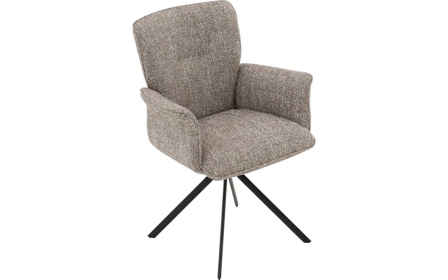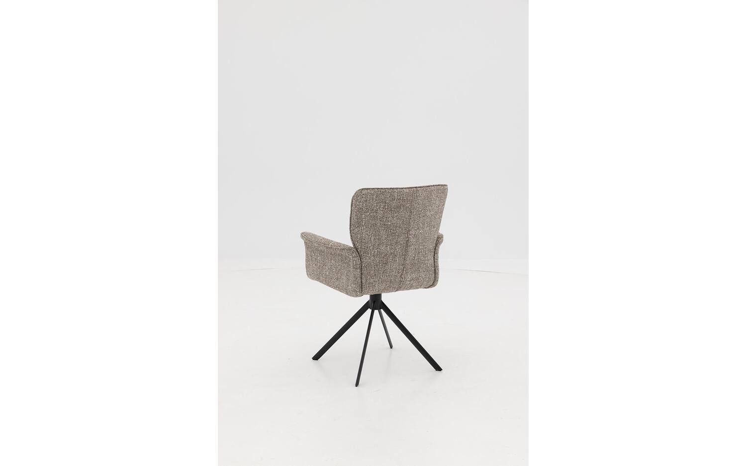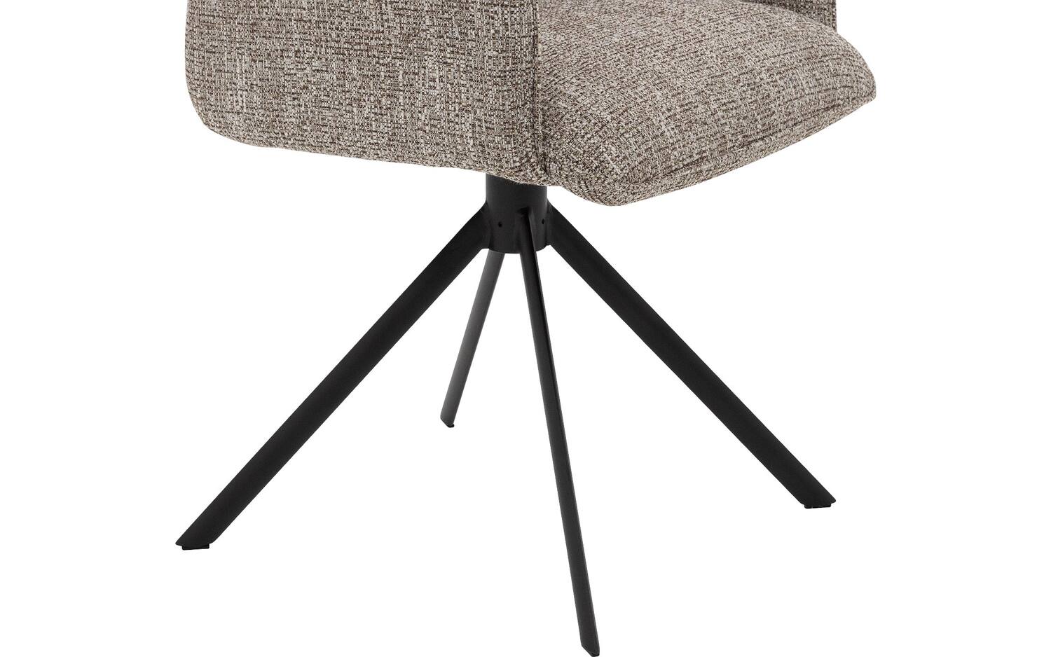 Het zwarte onderstel met poedercoating vormt een fraai contrast met de bruine bekleding en geeft de stoel een eigentijdse uitstraling. De spinpoot zorgt niet alleen voor stabiliteit maar maakt ook de draaibeweging mogelijk, wat deze eetkamerstoel extra functioneel maakt voor dagelijks gebruik.