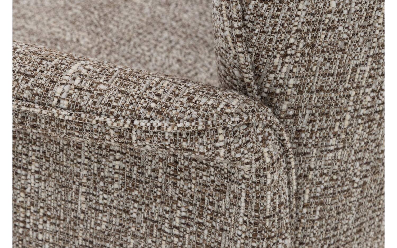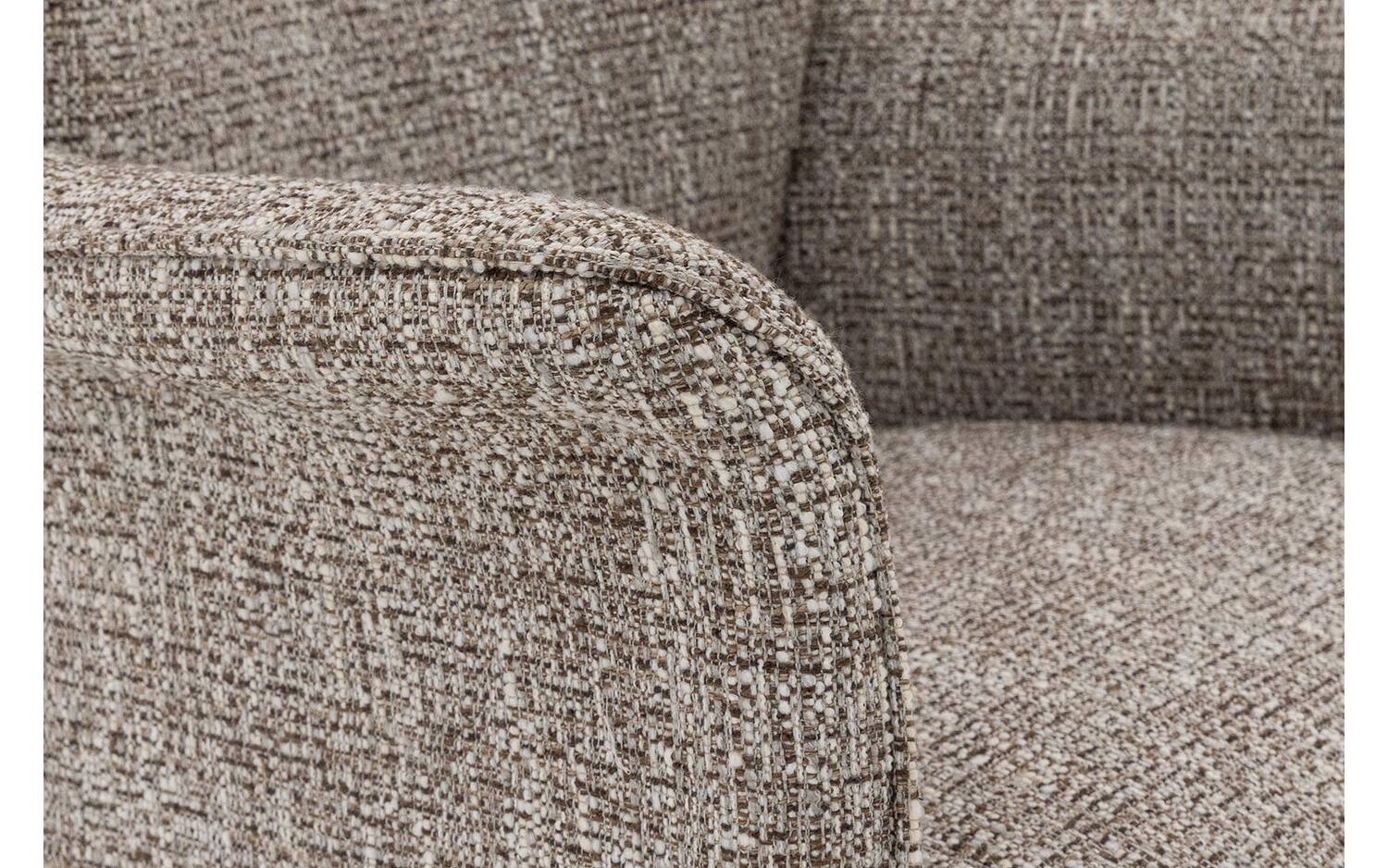 De grofgeweven bruine stof geeft eettafelstoel Hermes een warme en karaktervolle uitstraling. Het gemeleerde bruine textiel voegt rijke textuur toe aan je eetkamer en past prachtig bij verschillende interieurstijlen. De vaste stoffering zorgt voor een strakke en moderne look die lang mooi blijft.