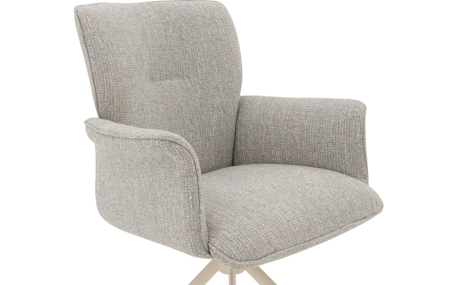 Stijlvolle details van deze grijze eetkamerstoel met armleuning
