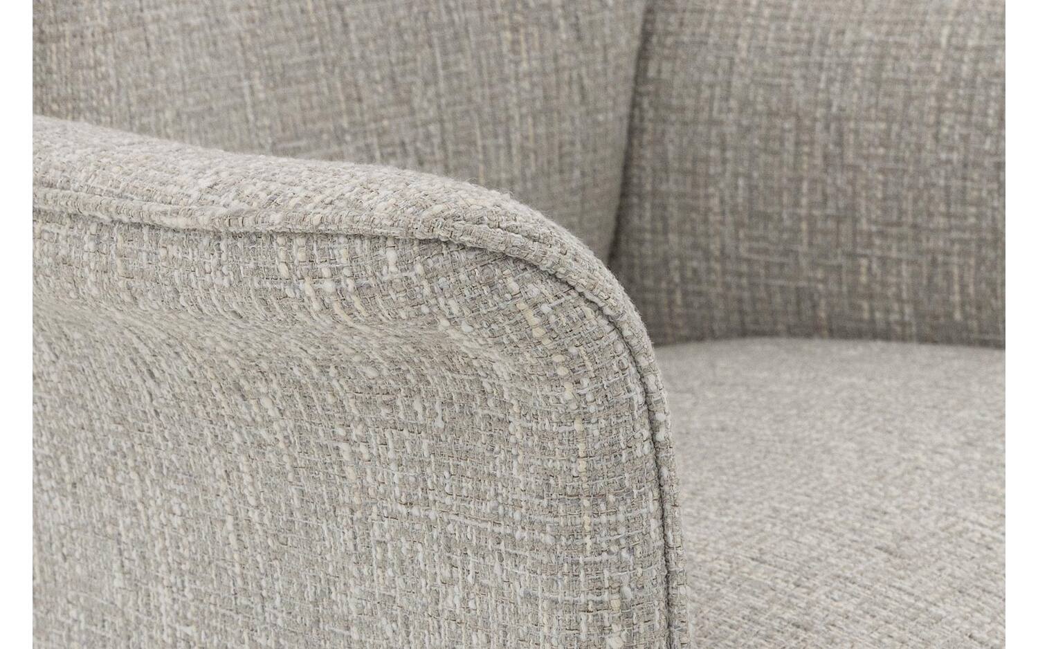 De grof geweven grijze bekleding geeft eettafelstoel Hermes een warme, levendige uitstraling. Het gemeleerde stof heeft een mooie structuur die diepte toevoegt aan je eethoek. De stoel is voorzien van een strakke, vaste stoffering die zorgt voor een moderne look.
