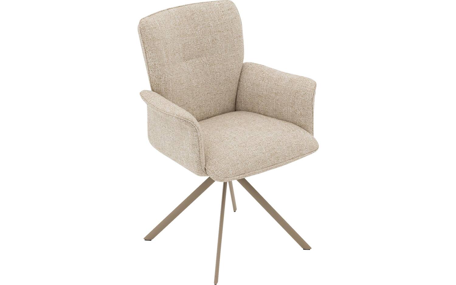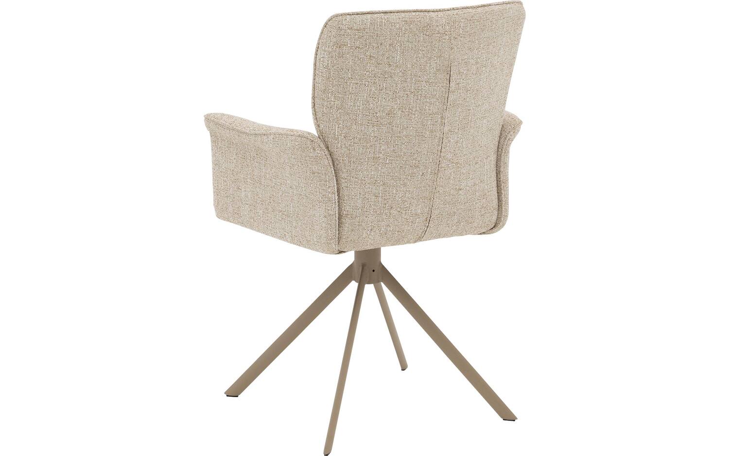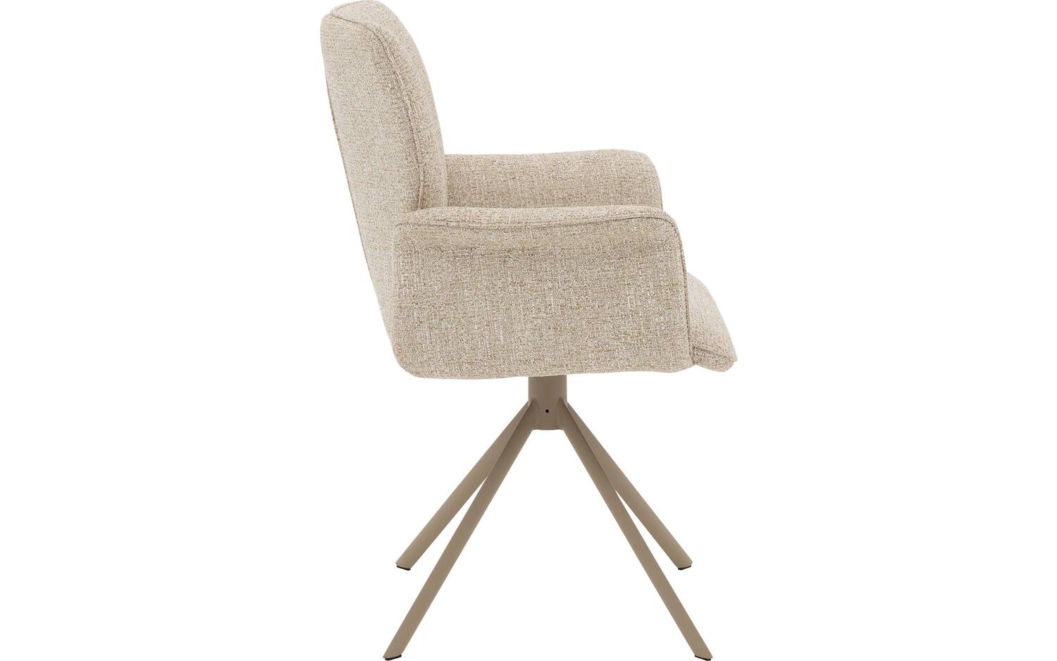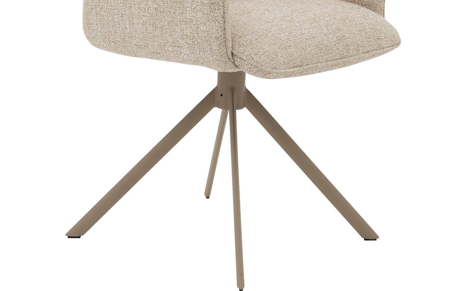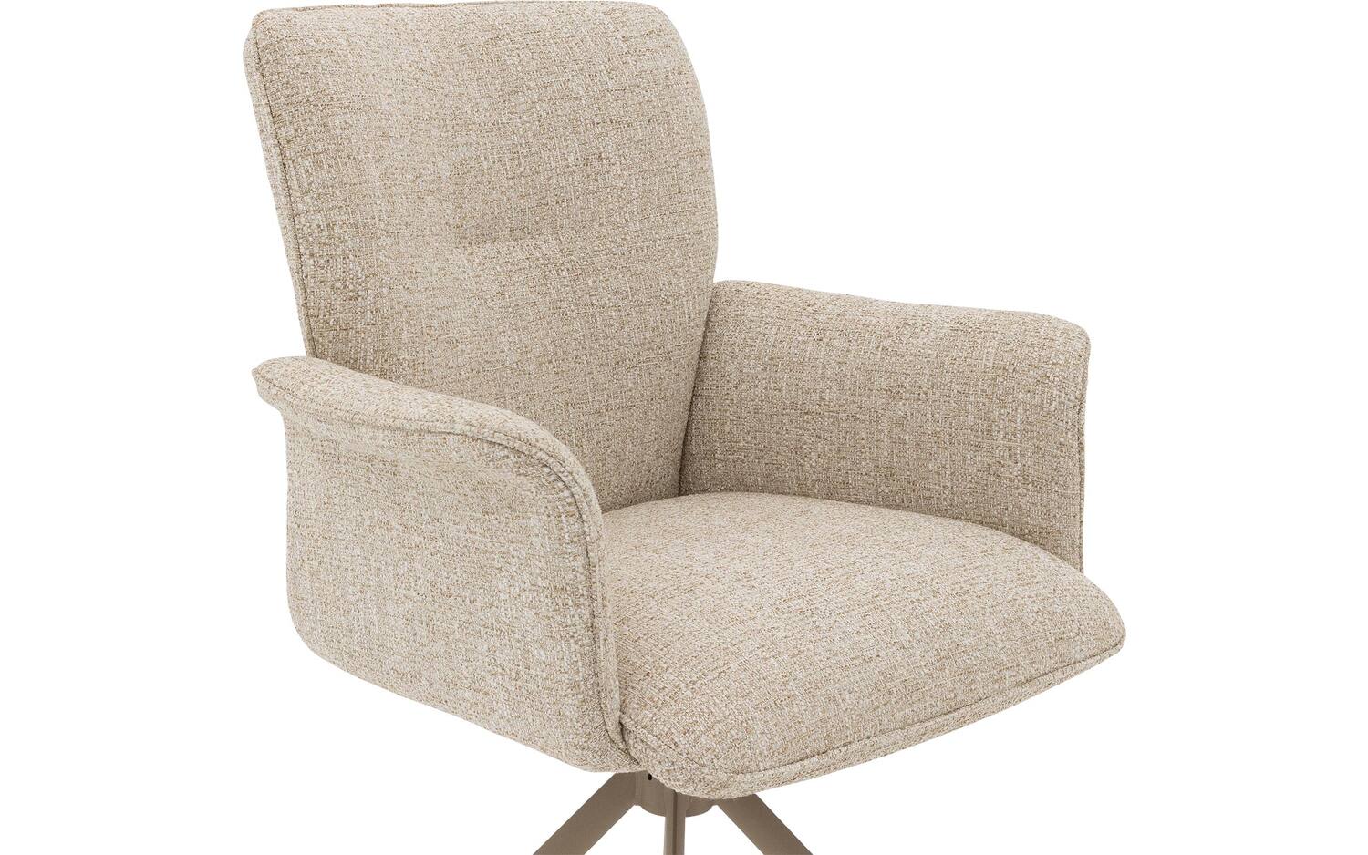 Stijlvolle details van deze beige eetkamerstoel met armleuning