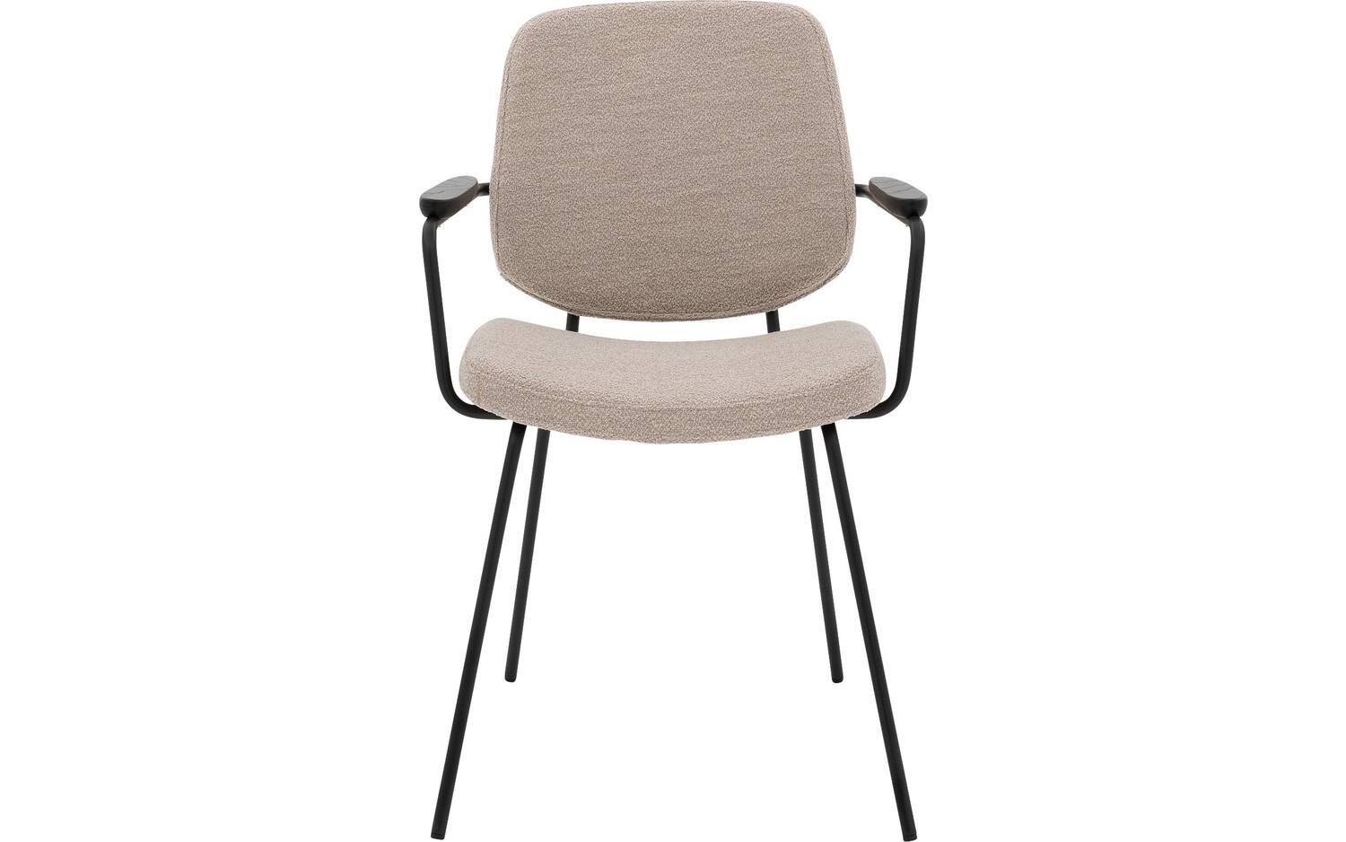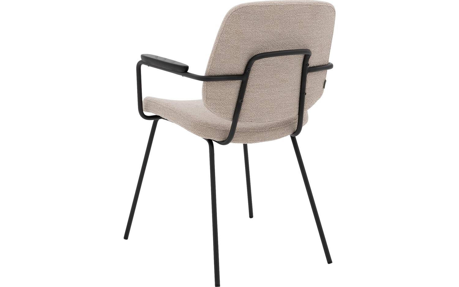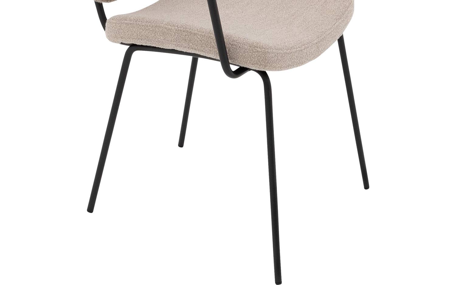 Bekijk beige eetkamerstoel Hjalmar met armleuning! Deze trendy stoel in zachte boucléstof brengt de populaire teddy stijl naar je eetkamer. Met zijn afgeronde vormen en minimalistische design creëert Hjalmar een moderne uitstraling die past in verschillende interieurstijlen. De zwarte gepoedercoate stoelpoten vormen een stijlvol contrast met de lichte bekleding. Geef jij deze tijdloze eettafelstoel een plekje in jouw moderne of elegant chique eetkamer?