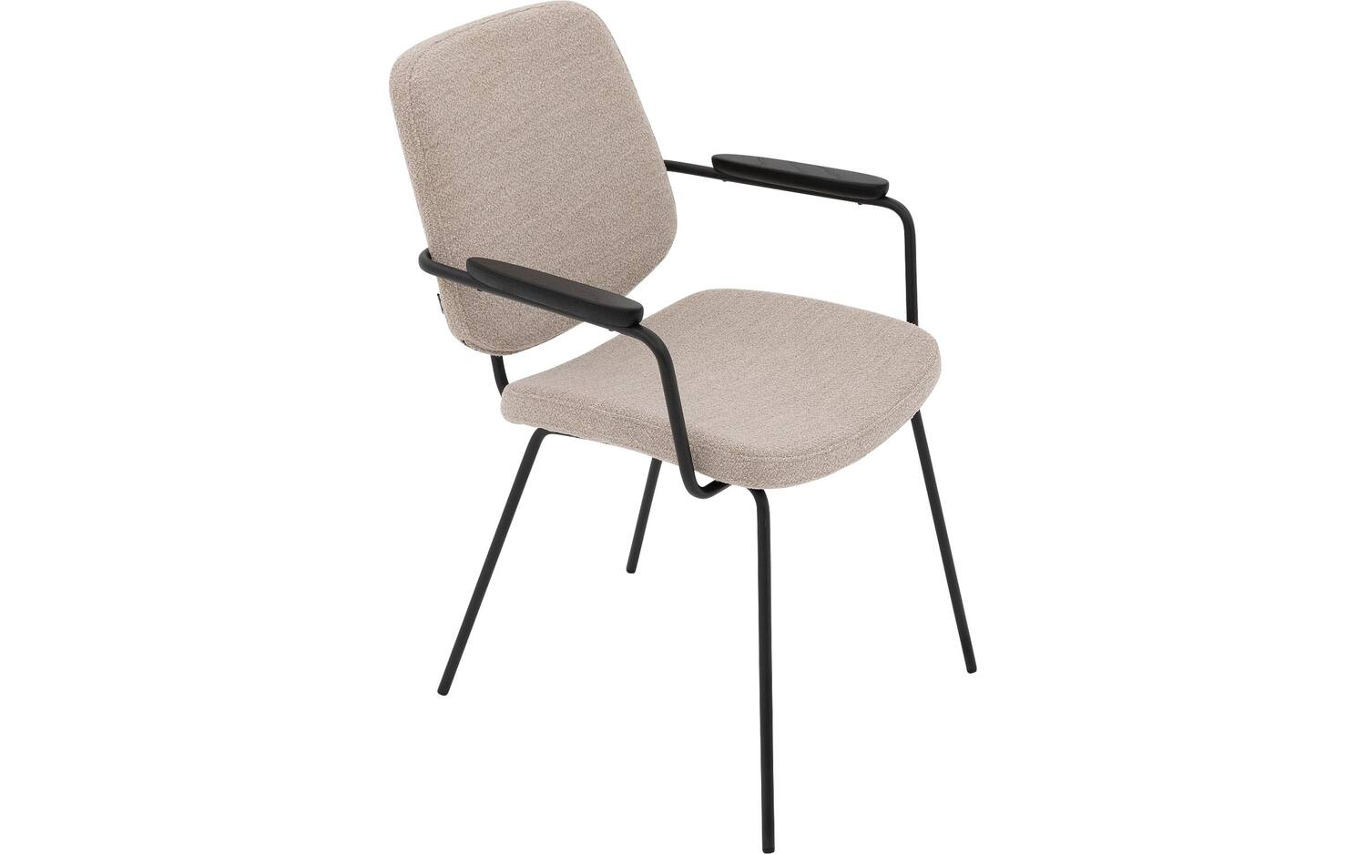 Het zwarte onderstel met gepoedercoate poten vormt een mooi contrast met de lichte stof en geeft de stoel een eigentijdse uitstraling. De stoel is geschikt voor zeer intensief gebruik, ideaal voor dagelijks gebruik in jouw eetkamer.