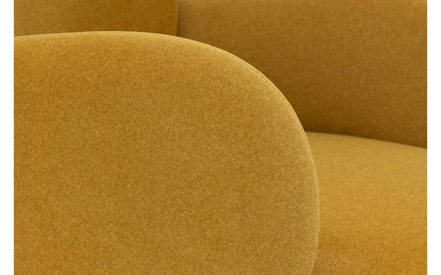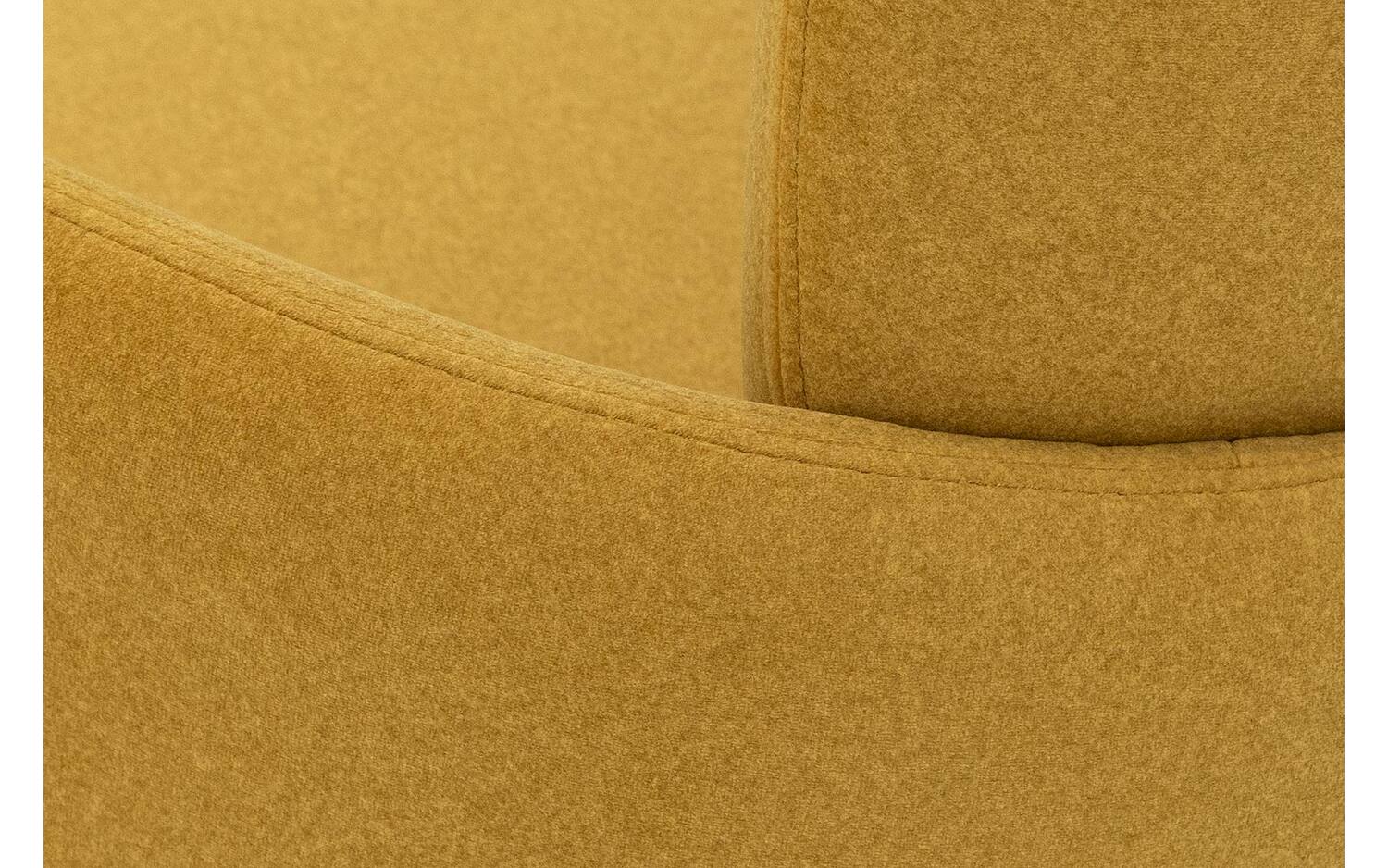 Bekijk de gele eetkamerstoel met armleuning Lahja! Deze okergele eetstoel in velours stof brengt een warme, stijlvolle sfeer in je eetkamer. De organische, ronde vorm geeft een natuurlijke, speelse uitstraling terwijl de zachte veloursstof voor luxe zorgt. Perfect voor lange diners met familie en vrienden, waarbij de armleuningen extra comfort bieden tijdens het tafelen. Het zwart gelakte onderstel vormt een sterk contrast met de okergele kleur en zorgt voor een stevige basis.