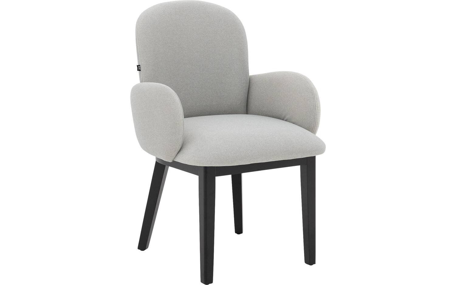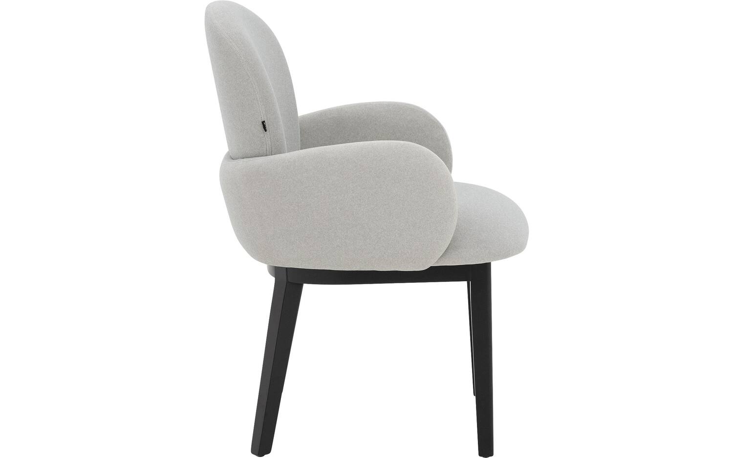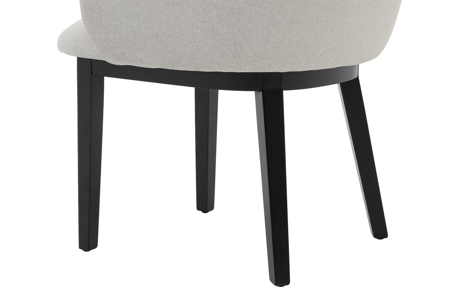 Het massief berkenhouten onderstel met zwarte gelakte poten maakt het plaatje compleet. Deze combinatie van lichtgrijs en zwart past mooi bij verschillende interieurstijlen. De stoel heeft geen wielen, dus staat stevig op zijn plek rondom de eettafel.