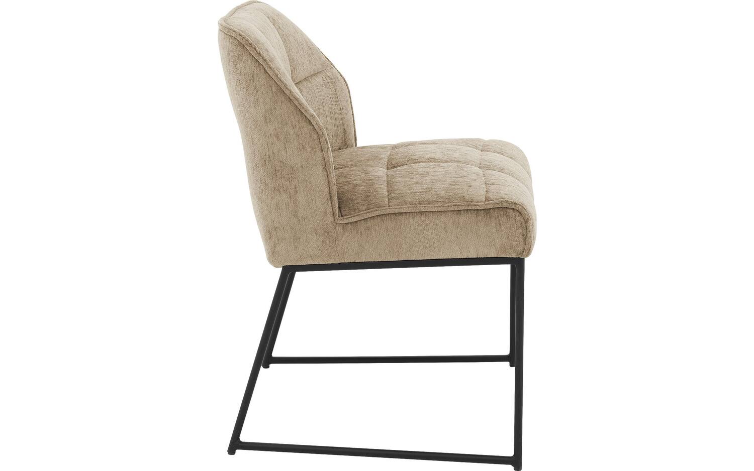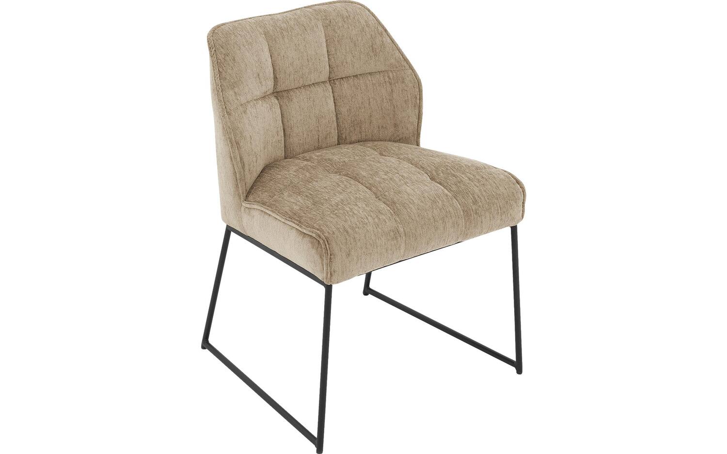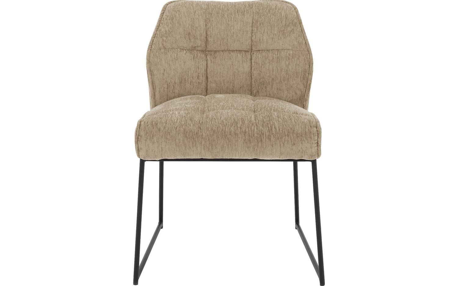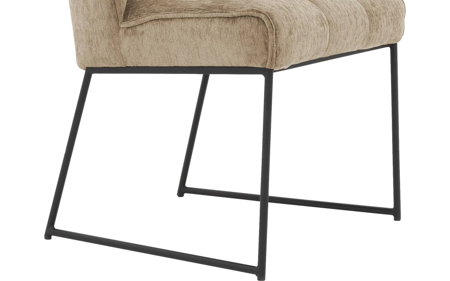 De gemeleerde beige stof van eetkamerstoel Ronnie heeft een subtiele structuur die karakter toevoegt aan je eetkamer. Het materiaal is niet alleen mooi maar ook praktisch, zodat je er jaren plezier van hebt. De zwarte sledepoot geeft de stoel een tijdloze uitstraling en zorgt voor stabiliteit.