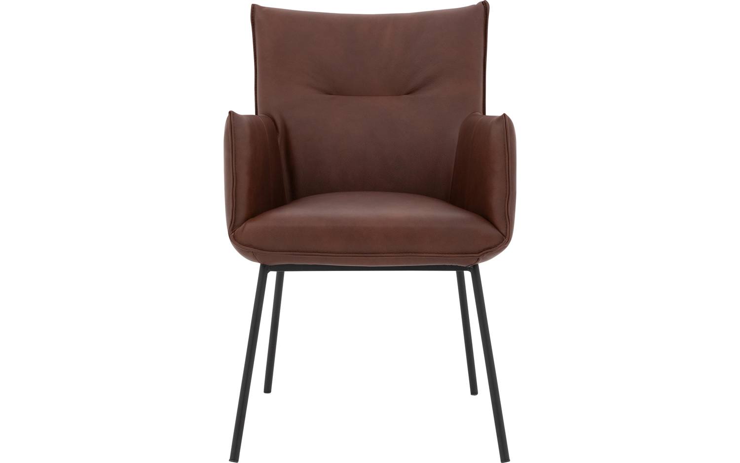 Cognac leren eetkamerstoel Silvan met armleuning combineert een stijlvol design met een ruig randje. Het cognackleurige royal leer geeft deze eettafelstoel een robuust karakter, terwijl de strakke lijnen en stiknaad in de rugleuning voor een luxe uitstraling zorgen. Silvan past moeiteloos in verschillende woonstijlen, van stoer tot chique, en biedt tegelijkertijd optimaal comfort voor lange etentjes met vrienden en familie.