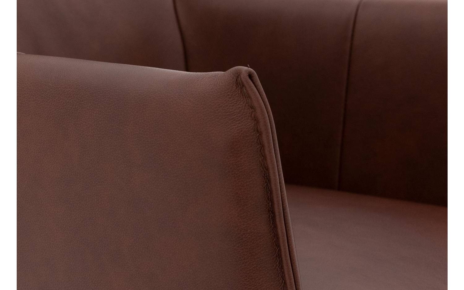 Het prachtige royal cognac leer van eetkamerstoel Silvan is niet gecorrigeerd, waardoor natuurlijke kenmerken zoals littekens en kleurverschillen zichtbaar blijven. Deze authentieke details geven elke stoel een uniek karakter. Het leer heeft een beschermlaag van olie, waardoor het zacht en soepel aanvoelt.