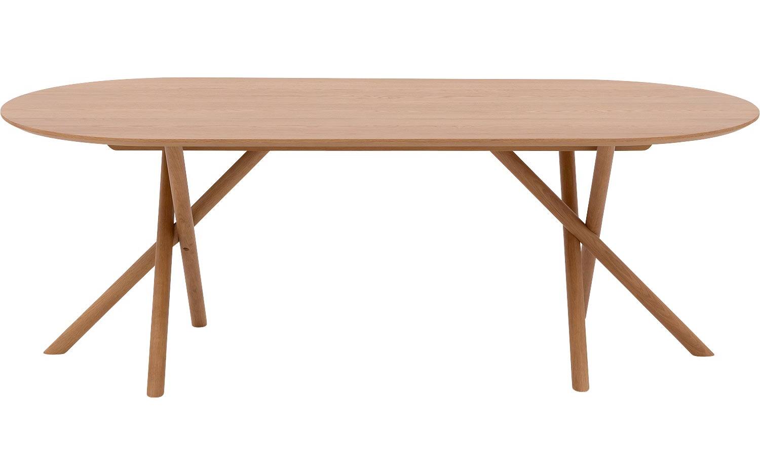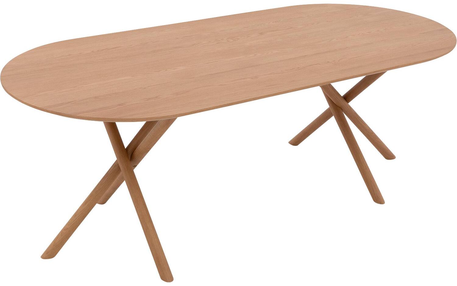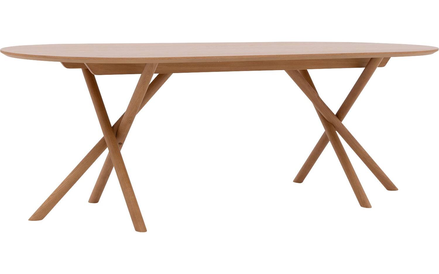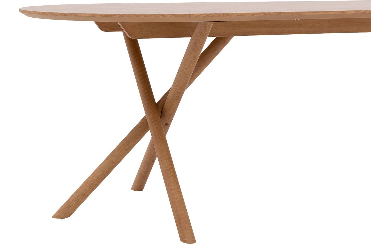 Het kruispoot onderstel in matching eiken zorgt voor stabiliteit en een strakke look. Door het doordachte design krijg je veel beenruimte rondom de tafel, wat het comfort verhoogt tijdens lange etentjes.