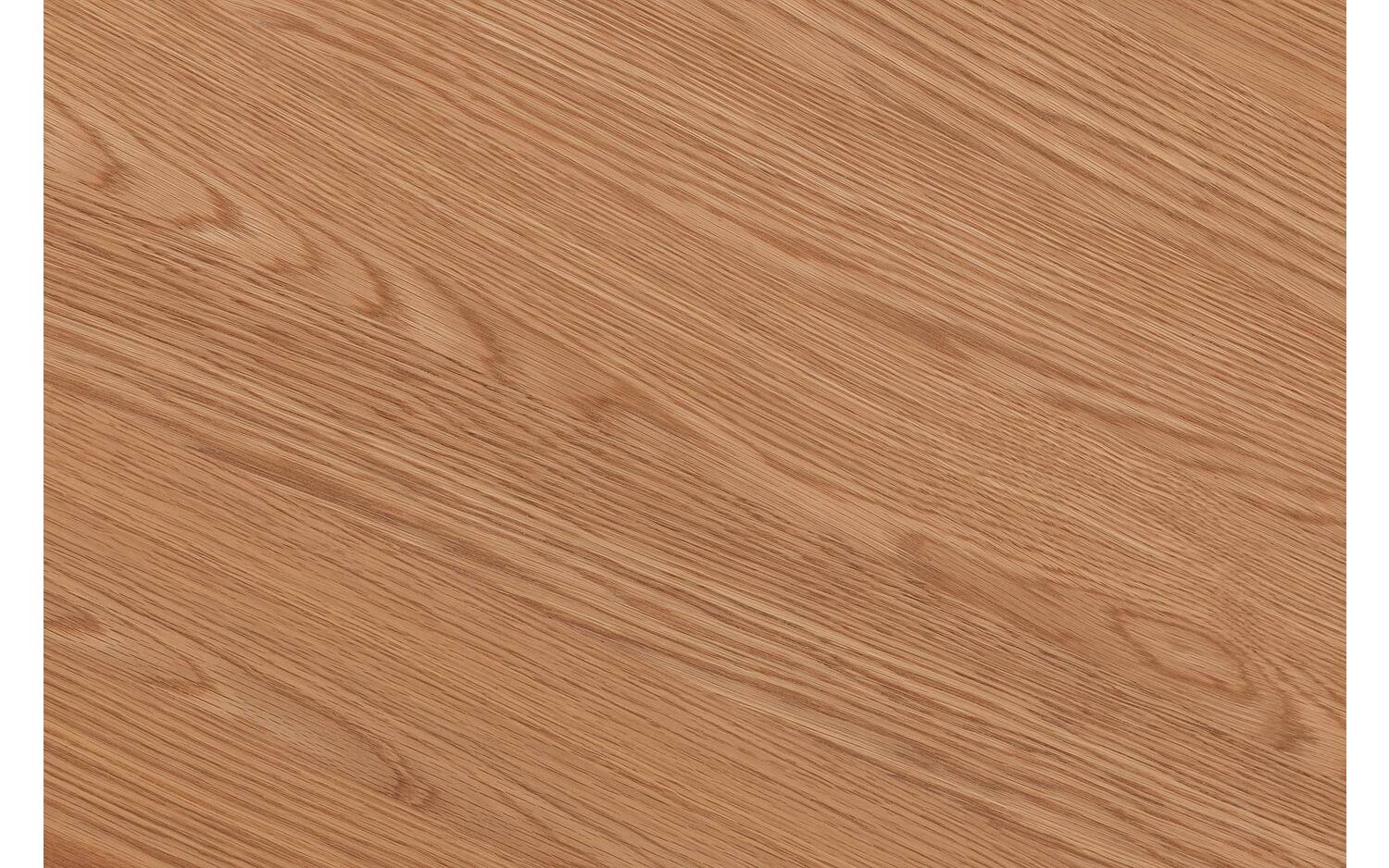 Het ronde tafelblad is gemaakt van eiken fineer met een gelakte afwerking in natuurlijke kleur. De laklaag beschermt tegen oneffenheden en verkleint de kans op kringen en vlekken aanzienlijk.