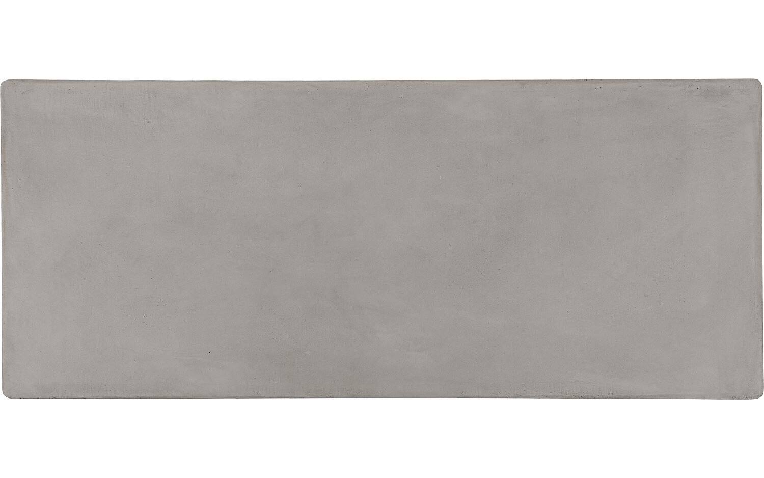 Het grijze tafelblad is gemaakt van MDF met een dunne betonlaag in Charquel kleur. Deze betonlook heeft natuurlijke onregelmatigheden zoals kleine putjes en barstjes die de industriële uitstraling versterken. De rechte randafwerking houdt het design strak en tijdloos.