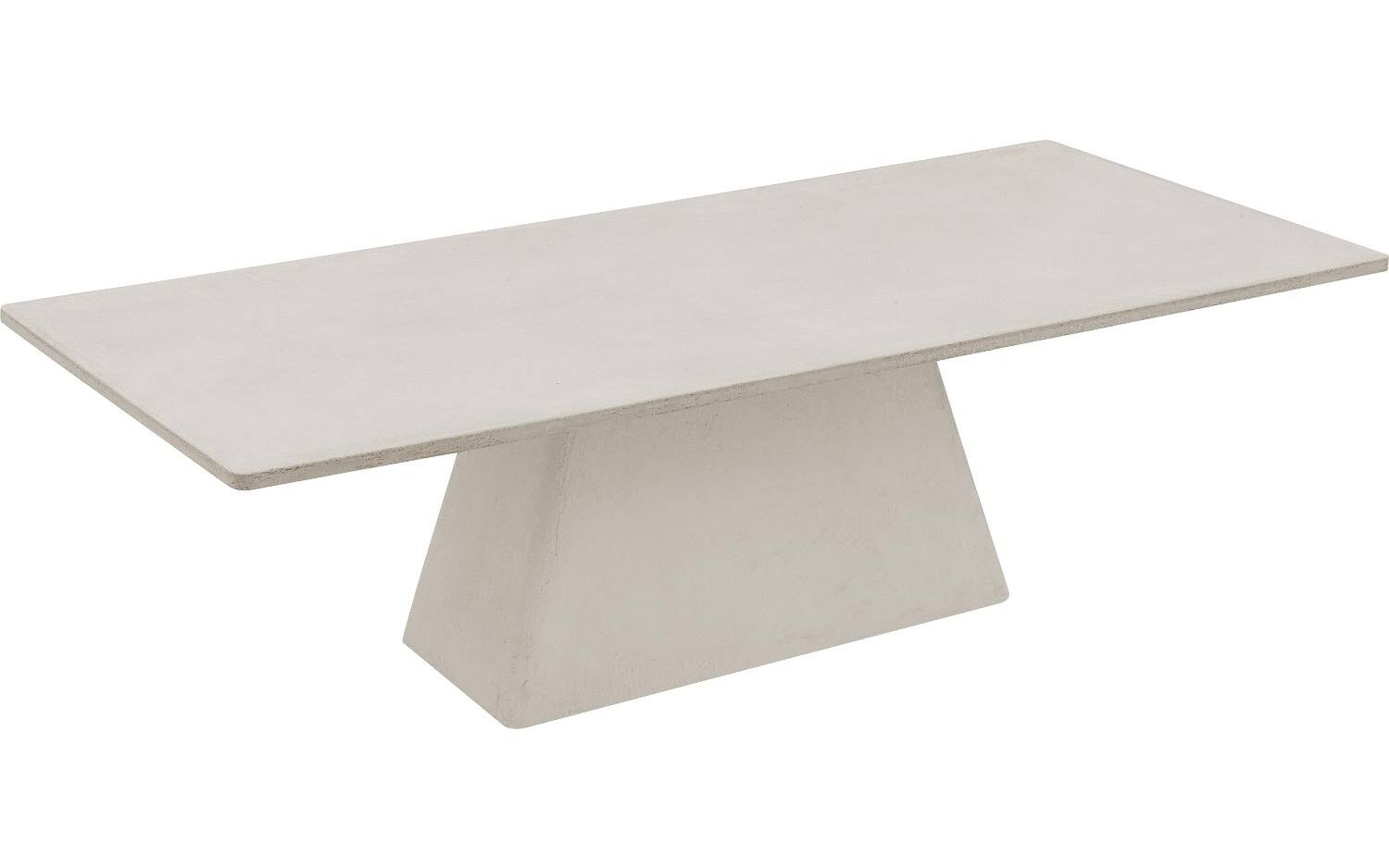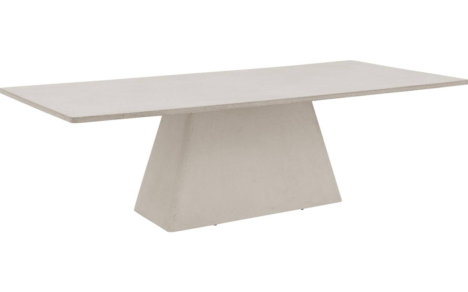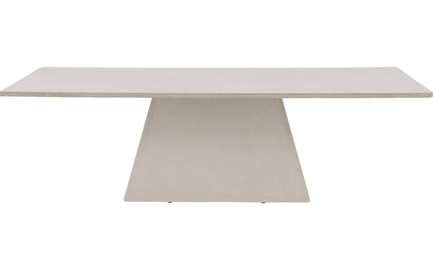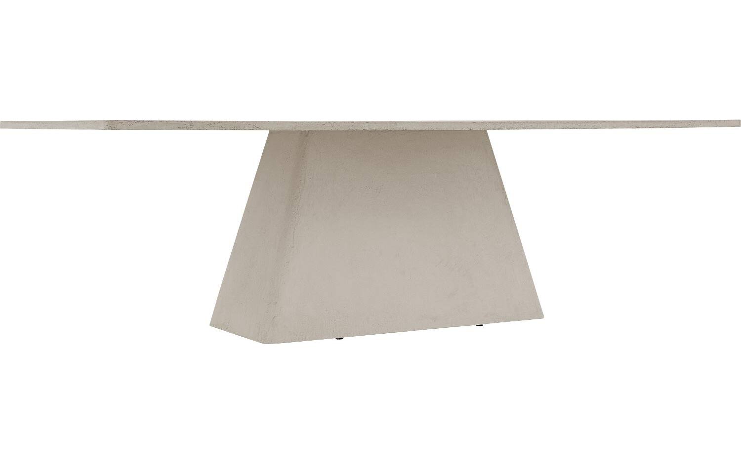 Eettafel Stone heeft een strakke rechthoekige vorm met elegante ronde details. De rechthoekige betonnen poten in matching grijze kleur zorgen voor een robuuste, industriële basis. Met 8 zitplaatsen biedt deze eetkamertafel ruimte voor gezellige familiediners en etentjes met vrienden.