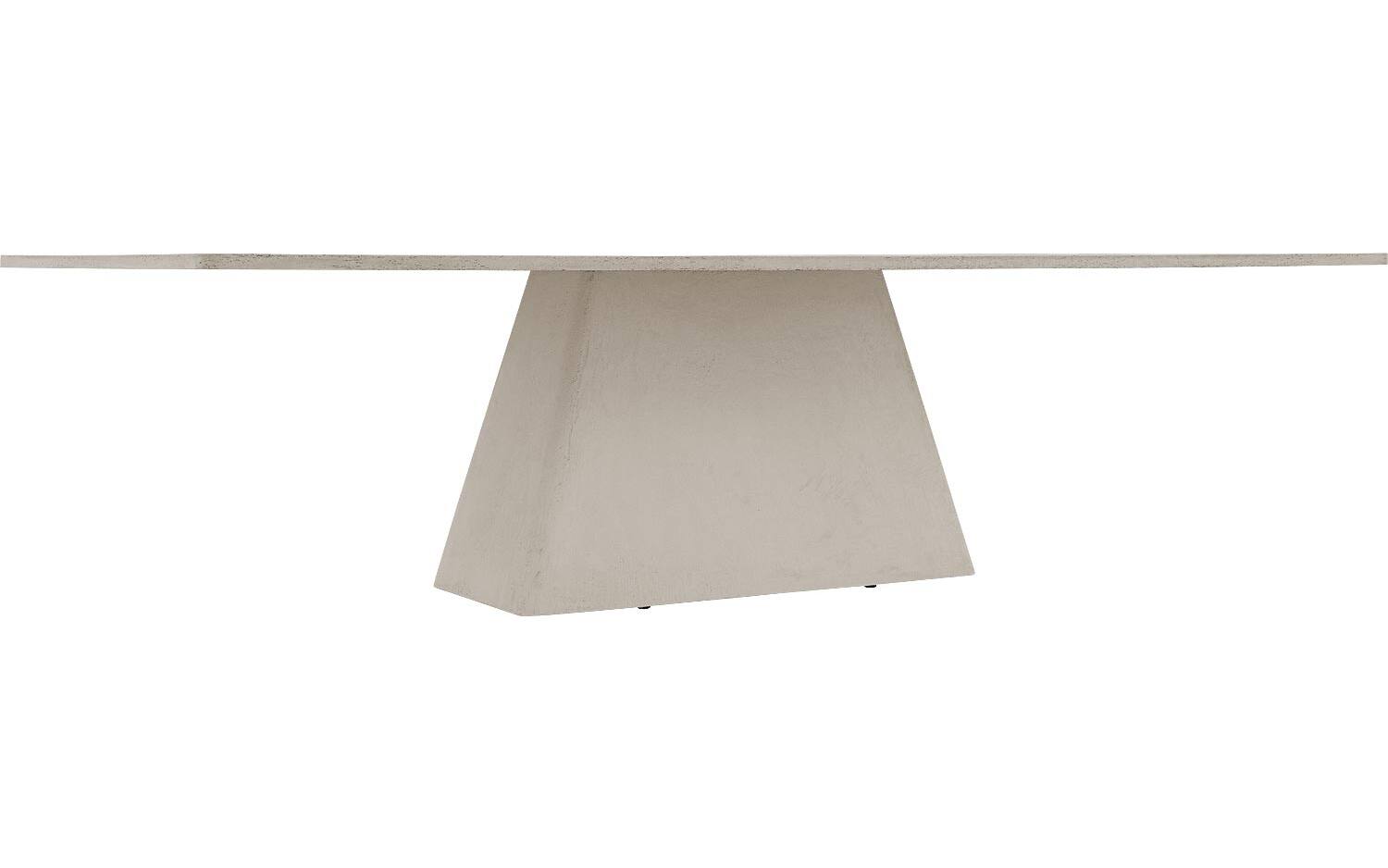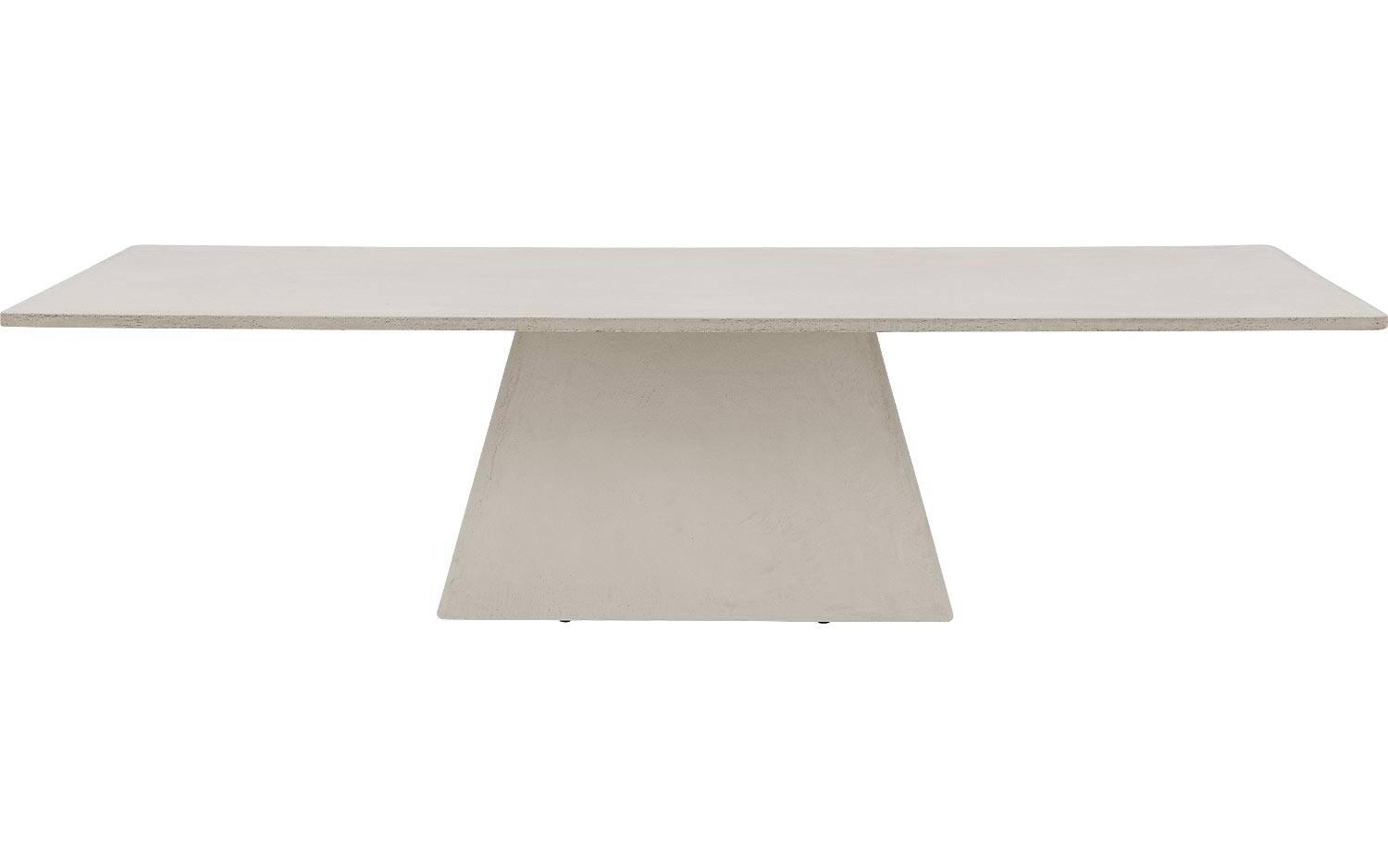 Eettafel Stone heeft een strakke rechthoekige vorm met opvallende rechthoekige poten in betonlook. De grijze kleur en industriële afwerking geven de tafel een stoer karakter, terwijl de elegante vormen voor verfijning zorgen. Ideaal voor 8 personen aan tafel.