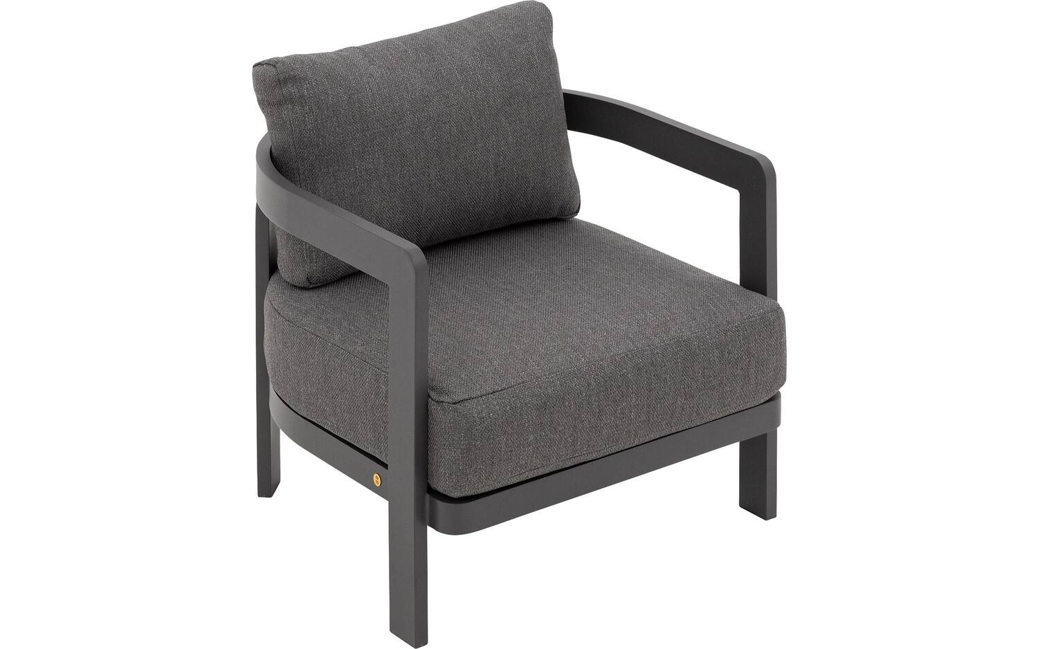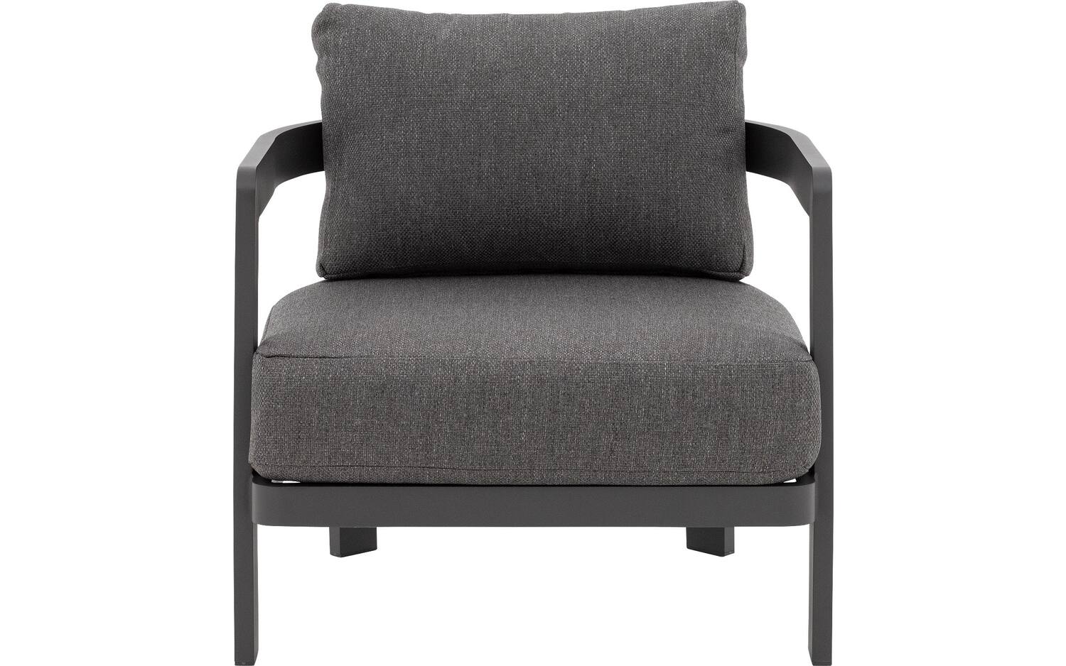 De antracietgrijze buitenstof van loungestoel Lasse geeft je tuin een tijdloze, elegante uitstraling. Het slanke frame vormt een mooi contrast met de zachte, ronde vormen van de kussens. De royale afmetingen (75 x 72 x 78 cm) bieden volop ruimte om heerlijk in weg te zakken.