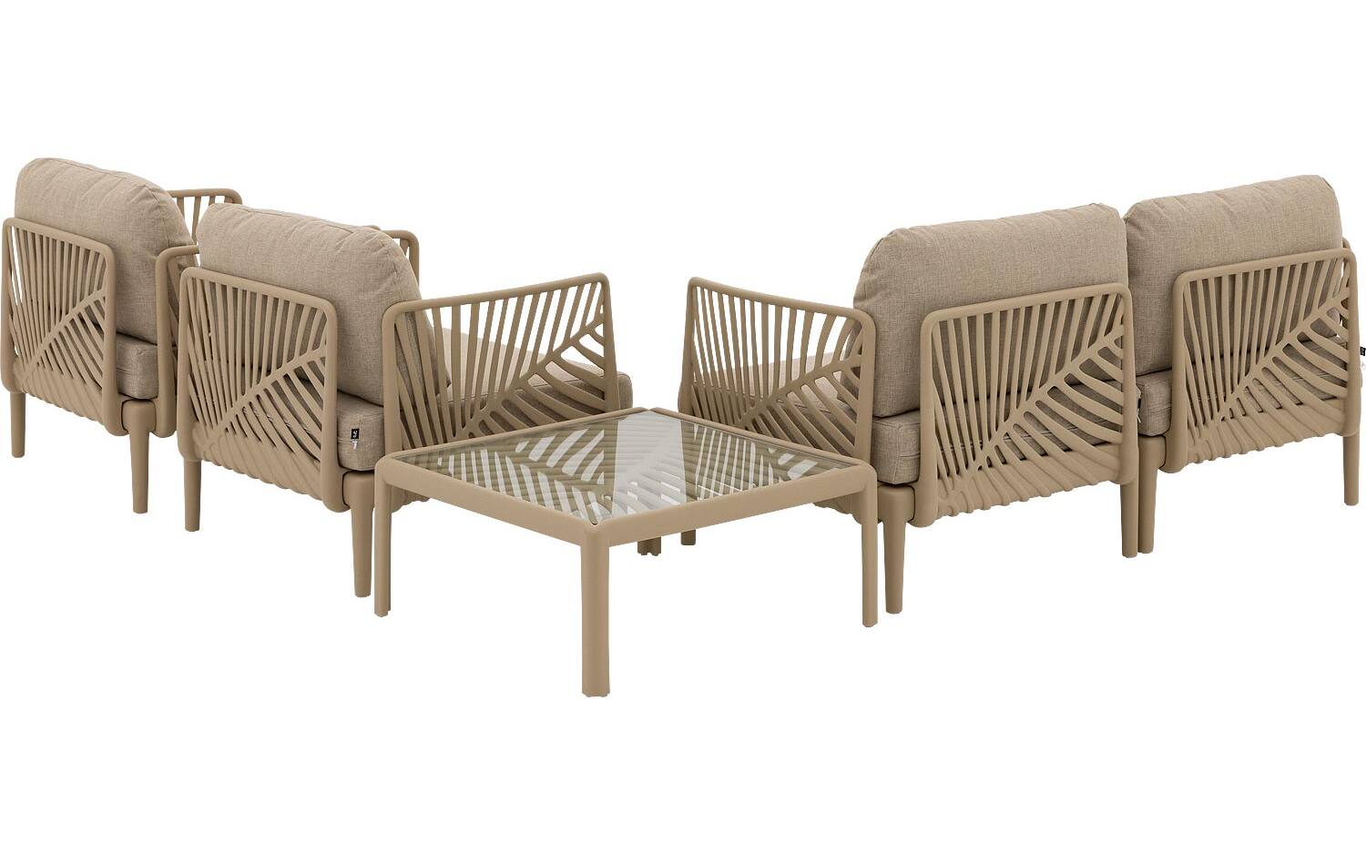 Loungeset Fazal biedt optimaal zitcomfort dankzij de zachte buitenstof in warme beige tint. De fijne zithoogte van 36 cm zorgt voor een ontspannen zitpositie, of je nu rechtop wilt zitten voor een gesprek of languit wilt liggen om te relaxen.