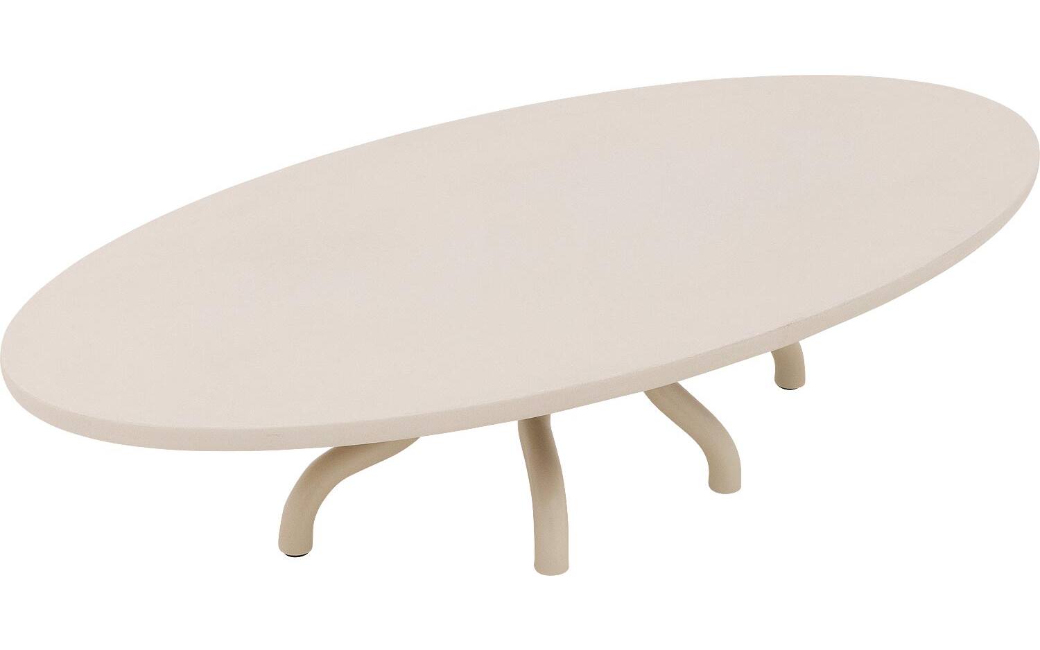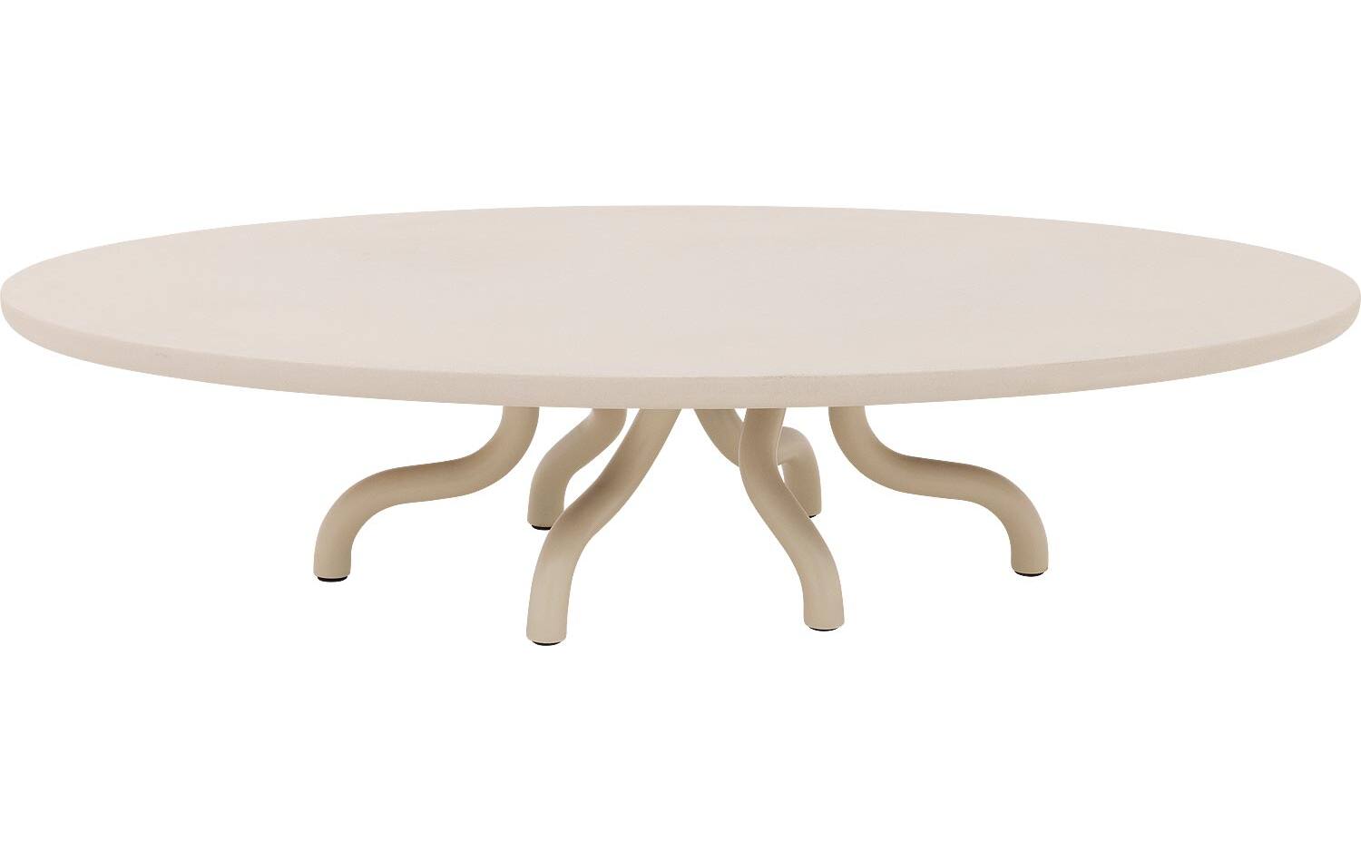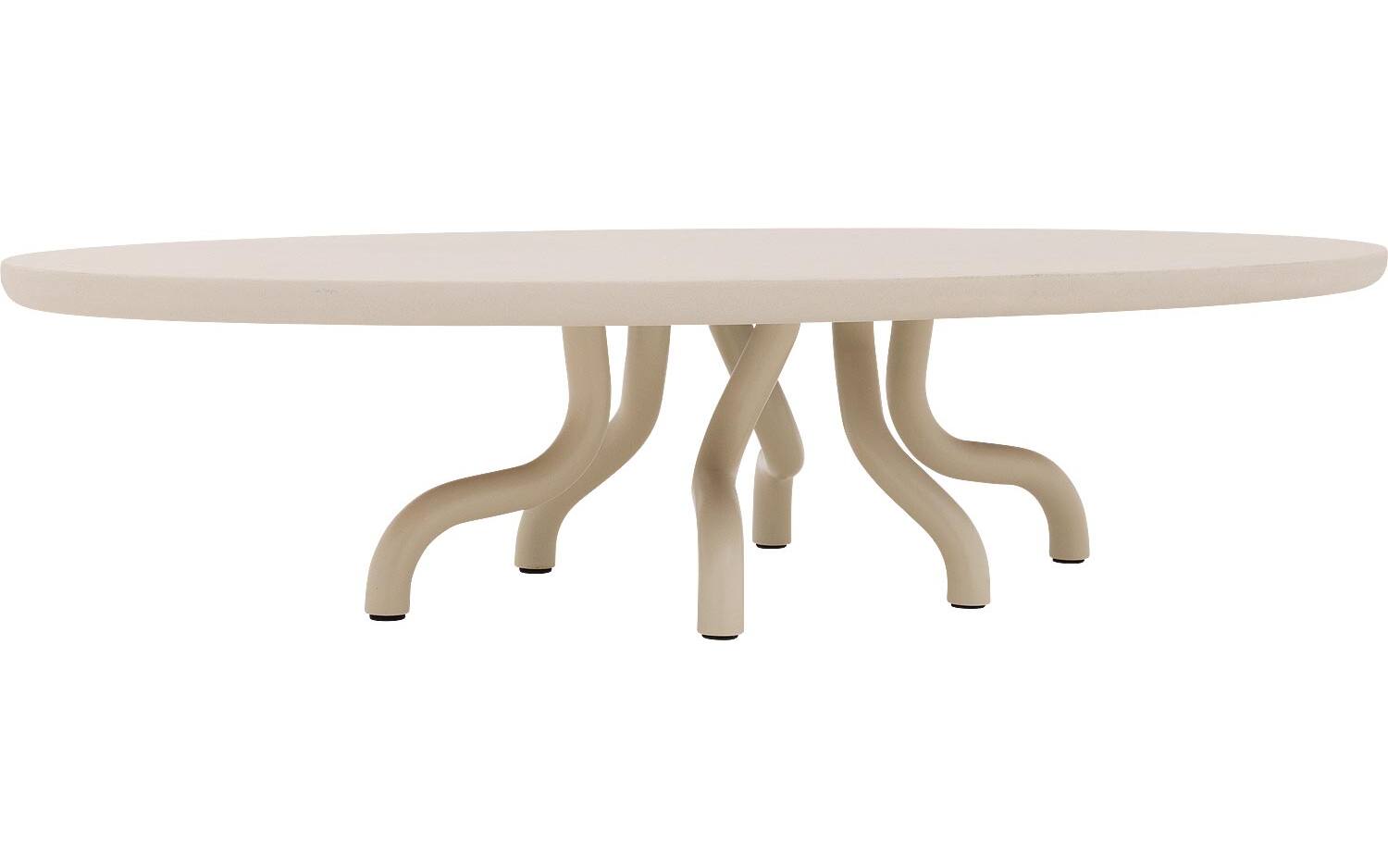 Salontafel Matera heeft een elegante ovale vorm die zachtheid brengt in je interieur. De zes gebogen poten in matching leefbeton grint zorgen voor een sculpturale basis die echt opvalt. Het robuuste karakter van het leefbeton geeft deze salontafel een stoere, industriële look.