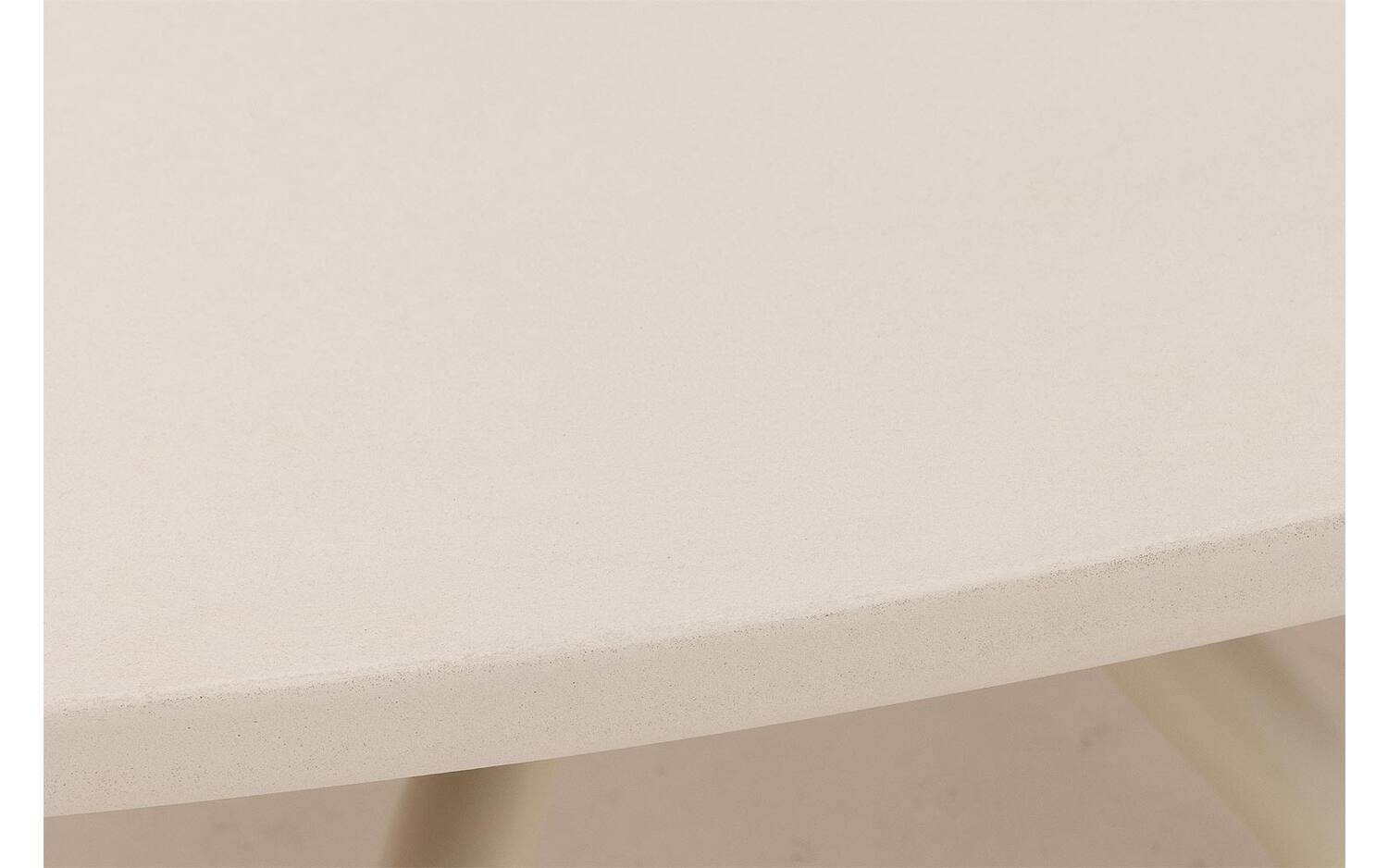 Het tafelblad van leefbeton grint heeft een natuurlijke uitstraling met subtiele kleurvariaties. De blanke beschermlaag zorgt ervoor dat het oppervlak duurzaam en onderhoudsvrienlijk blijft. De ovale vorm met 120 cm lengte biedt volop ruimte voor tijdschriften, koffie en decoratie.