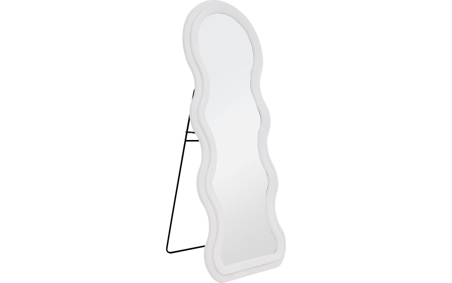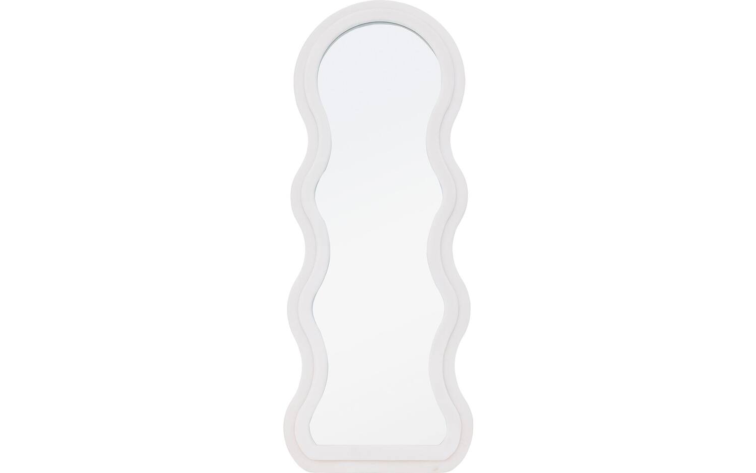 Staande spiegel Bats vormt een echte eyecatcher in je interieur met zijn organische, golvende vorm die doet denken aan een artistiek kunstwerk. Deze bijzondere spiegel van 60 x 160 cm combineert helder spiegelglas met een elegant wit...