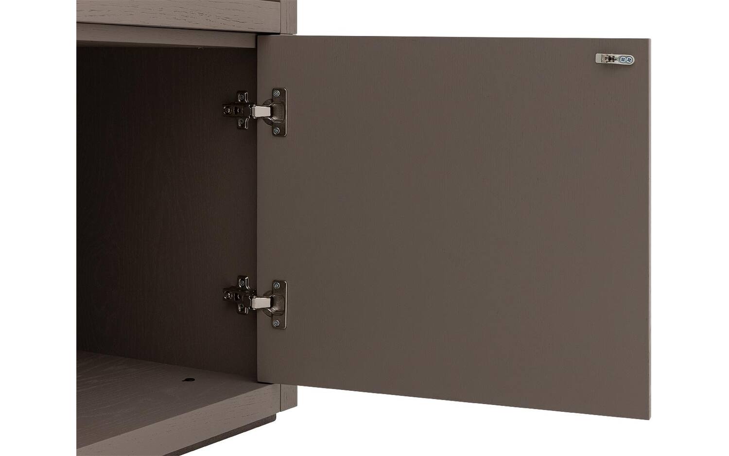 Het gelakte eiken fineer van tv meubel Barcelona beschermt effectief tegen vlekken en kringen. De warme taupe kleur geeft je woonkamer een rustige uitstraling. Het push-to-open systeem zorgt ervoor dat je de deuren eenvoudig opent zonder handgrepen, wat bijdraagt aan het strakke design.
