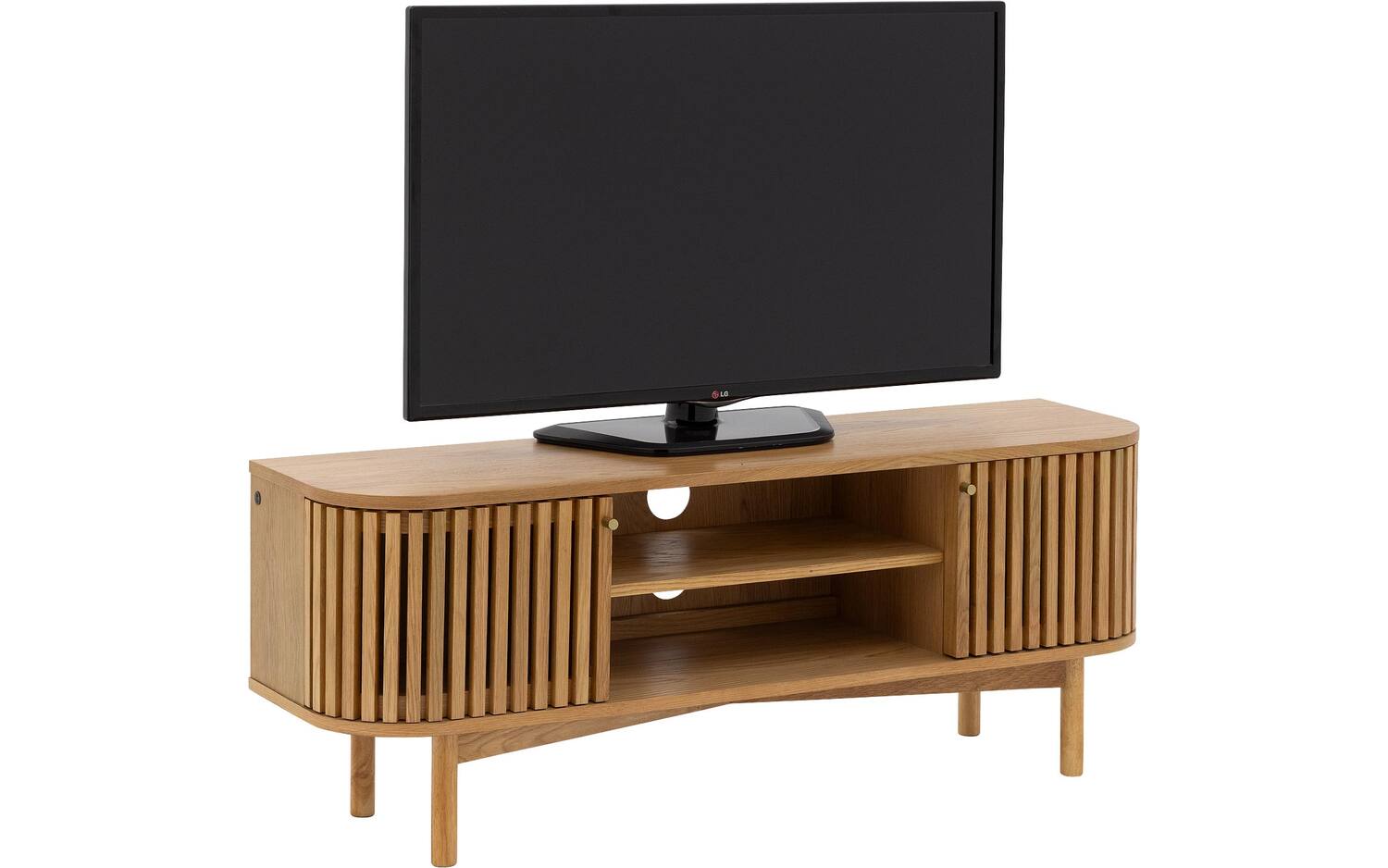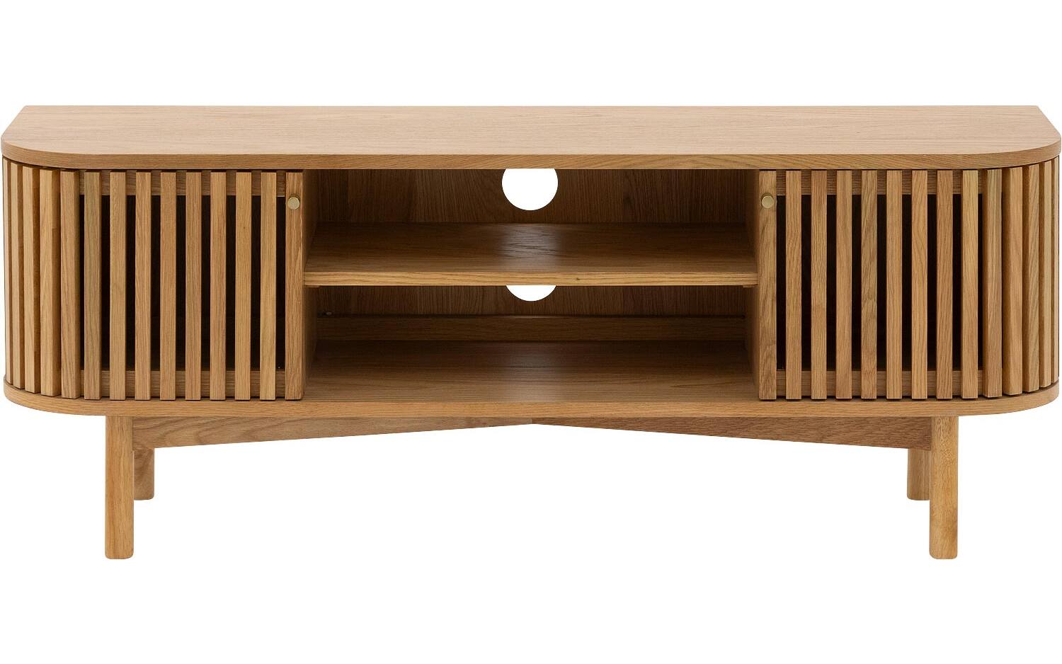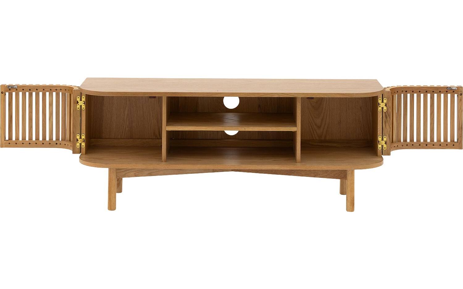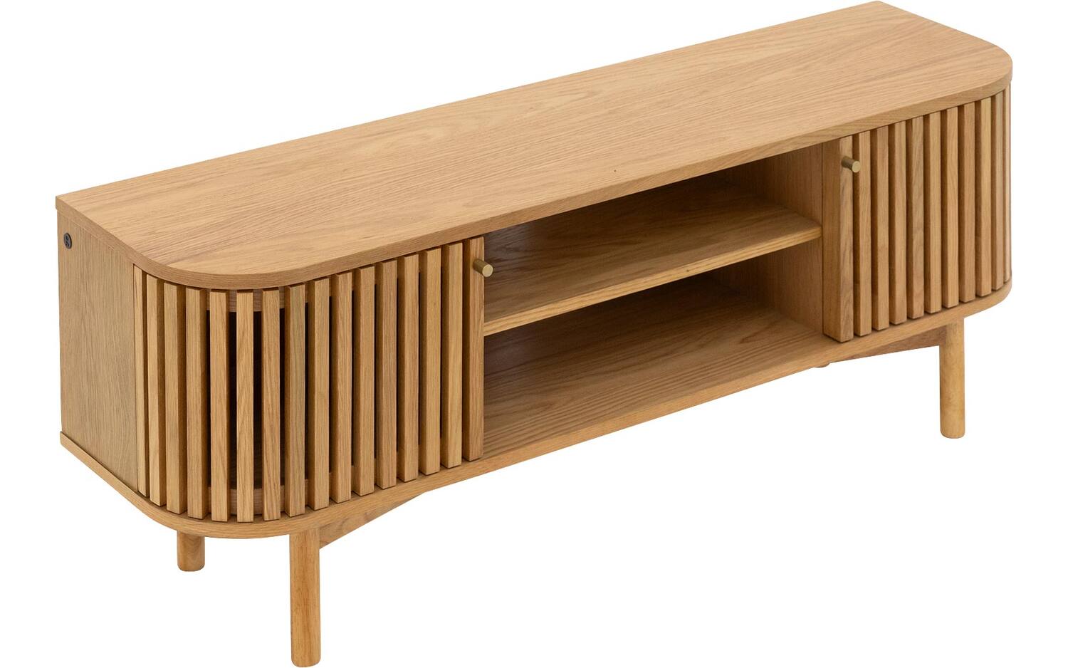 De doordachte indeling met twee deuren en twee open vakken biedt je alle flexibiliteit. Berg je apparatuur netjes weg achter de deuren en zet je mooiste woonaccessoires in de open vakken. De subtiele handgrepen maken het geheel helemaal af.