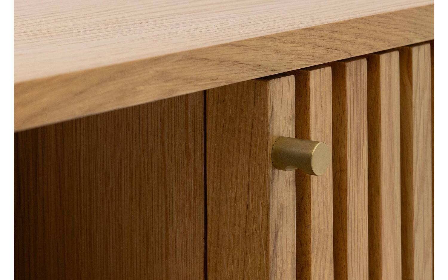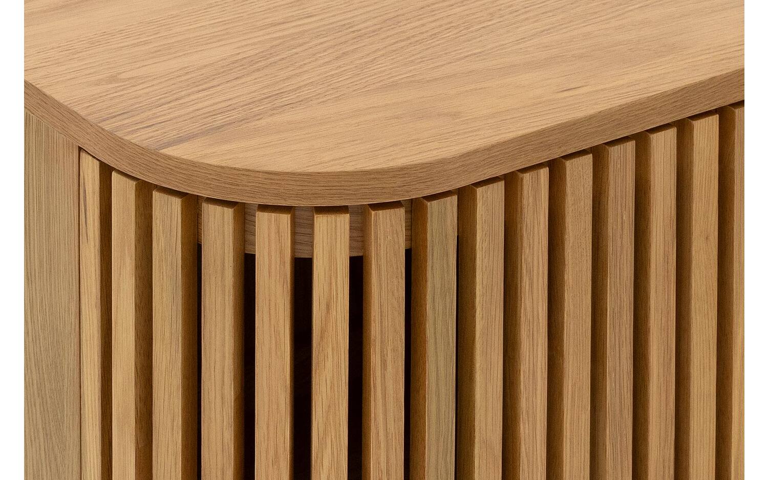 Tv meubel Soho straalt pure retro elegantie uit met zijn kenmerkende latten en zachte, afgeronde hoeken. Het blanke eiken geeft je interieur een warme, natuurlijke uitstraling die nooit uit de mode raakt. De harmonieuze vormgeving en subtiele handgrepen maken dit tv meubel tot een stijlvolle eyecatcher.