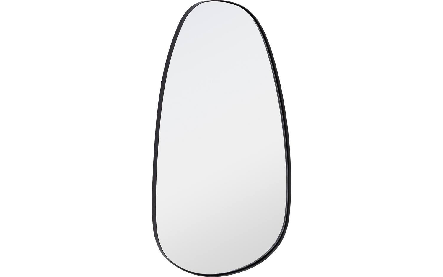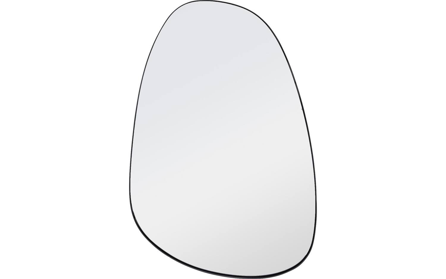 Wandspiegel Svet brengt een moderne twist in je interieur met zijn organische vorm en stijlvolle zwarte rand. Deze elegante spiegel van hoogwaardig spiegelglas heeft een formaat van 50 x 75 cm en creëert direct meer ruimte en licht in elke kamer. De bijzondere vorm maakt van deze wandspiegel een echte eyecatcher die perfect past in moderne en eigentijdse interieurs.