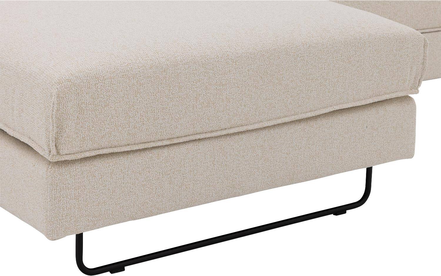 Deze hoekbank bestaat uit een 2,5-zits element met armleuning rechts en een chaise longue element links. De metalen beugelpoten geven de bank een luchtige uitstraling en maken schoonmaken eronder makkelijk. Perfect voor wie houdt van een stijlvol én praktisch interieur.
