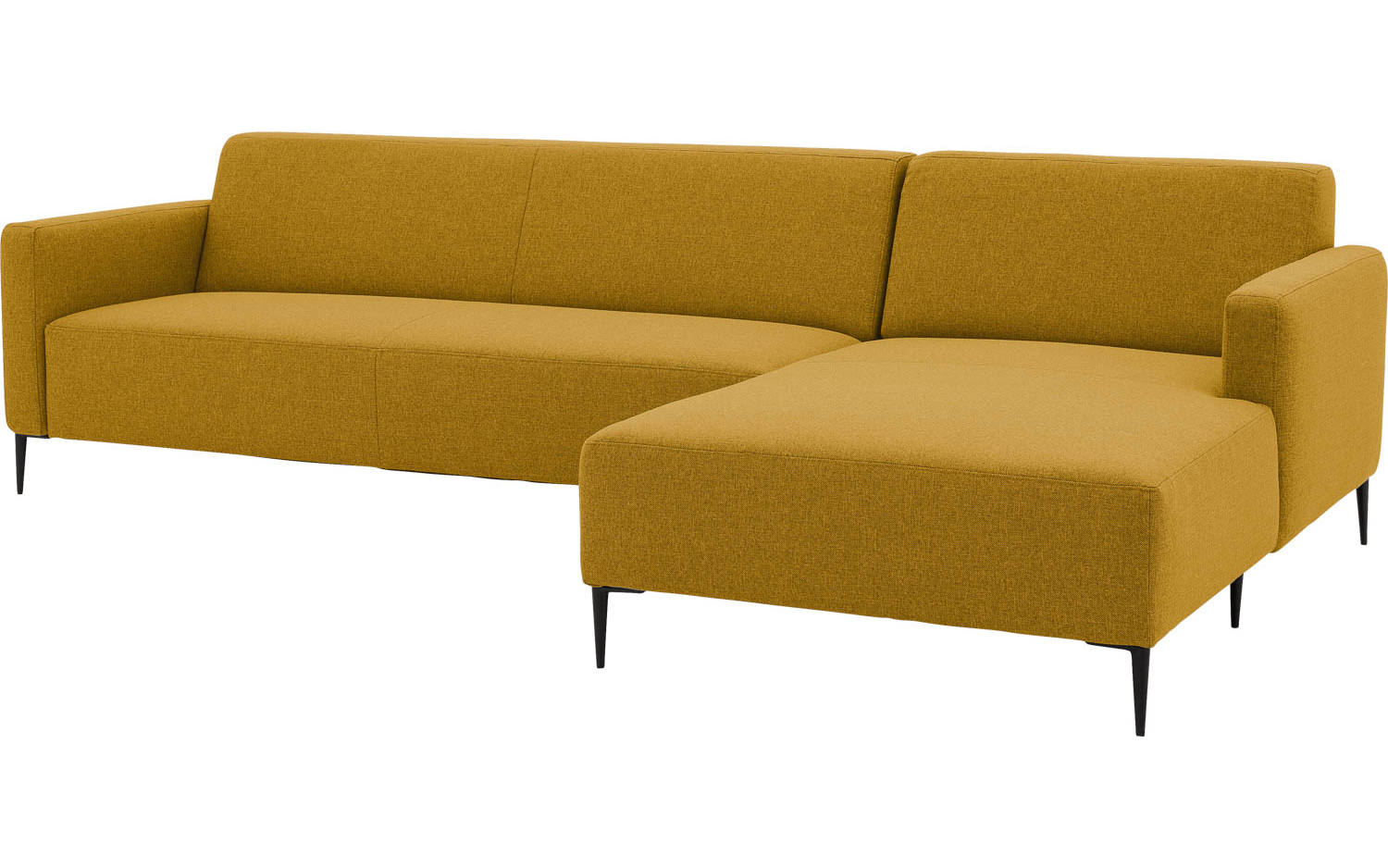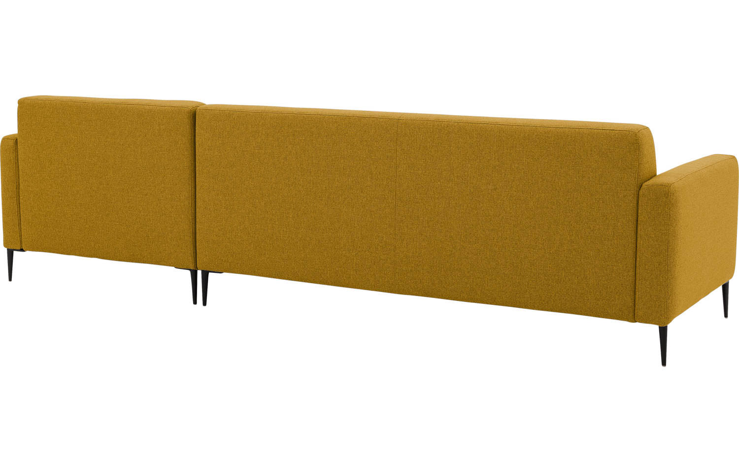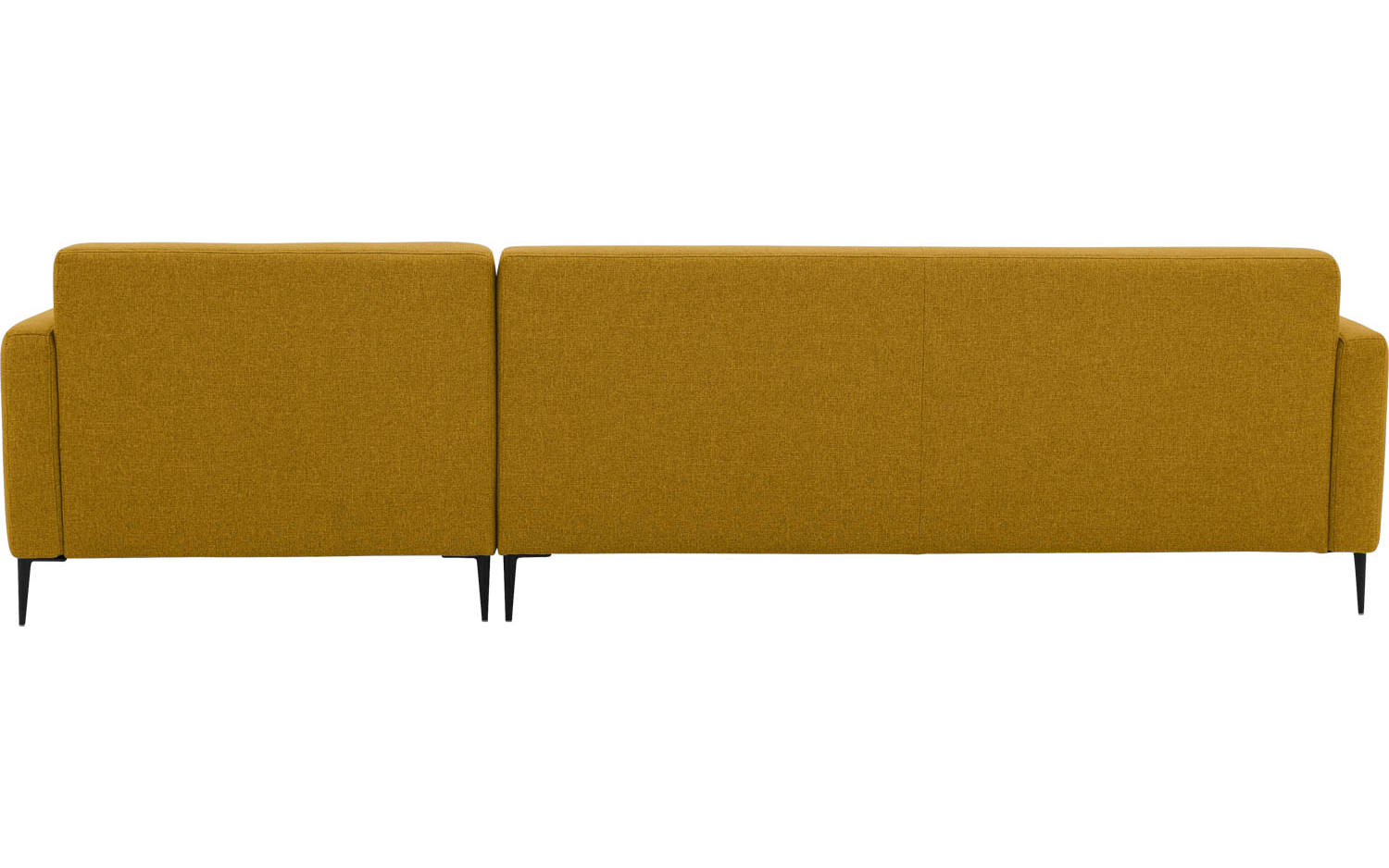 Met zijn fijn geweven stof in een warme saffraangele kleur brengt Key West direct een vrolijke sfeer in je interieur. De strakke belijning en tijdloze vormgeving maken deze hoekbank eenvoudig te combineren in vrijwel iedere woonstijl. De metalen poten met zwarte poedercoating geven een moderne en stoere uitstraling.