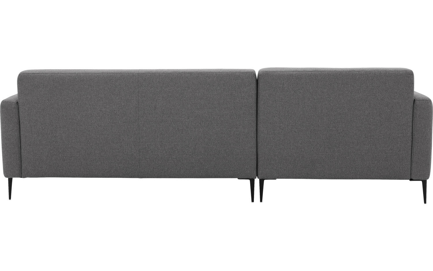 Met zijn strakke lijnen en fijn geweven grijze stof heeft Key West een tijdloos design. De metalen poten met zwarte poedercoating geven deze hoekbank een stoere en moderne uitstraling. Door de hoge poten creëer je optisch meer ruimte en kun je de vloer eronder gemakkelijk schoonhouden.
