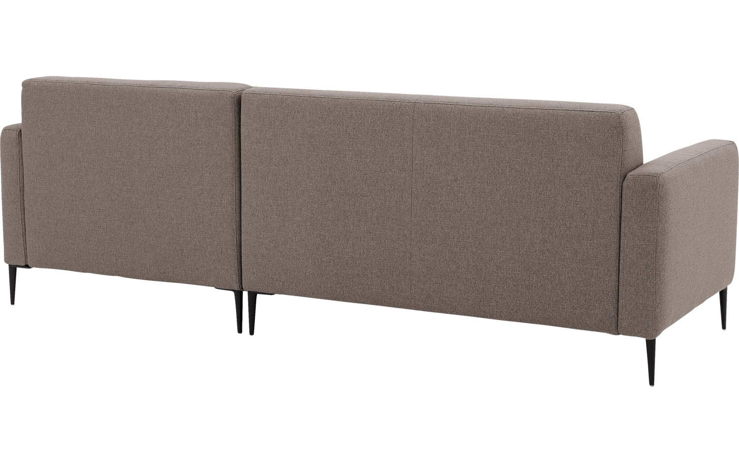 De fijn geweven grijze stof van Key West heeft een zachte uitstraling en is tijdloos in gebruik. De hoge metalen poten met zwarte poedercoating geven deze hoekbank een stoer en eigentijds karakter. Door de vaste stoffering blijven de kussens netjes op hun plaats en komt er geen vuil tussen de zitkussens.