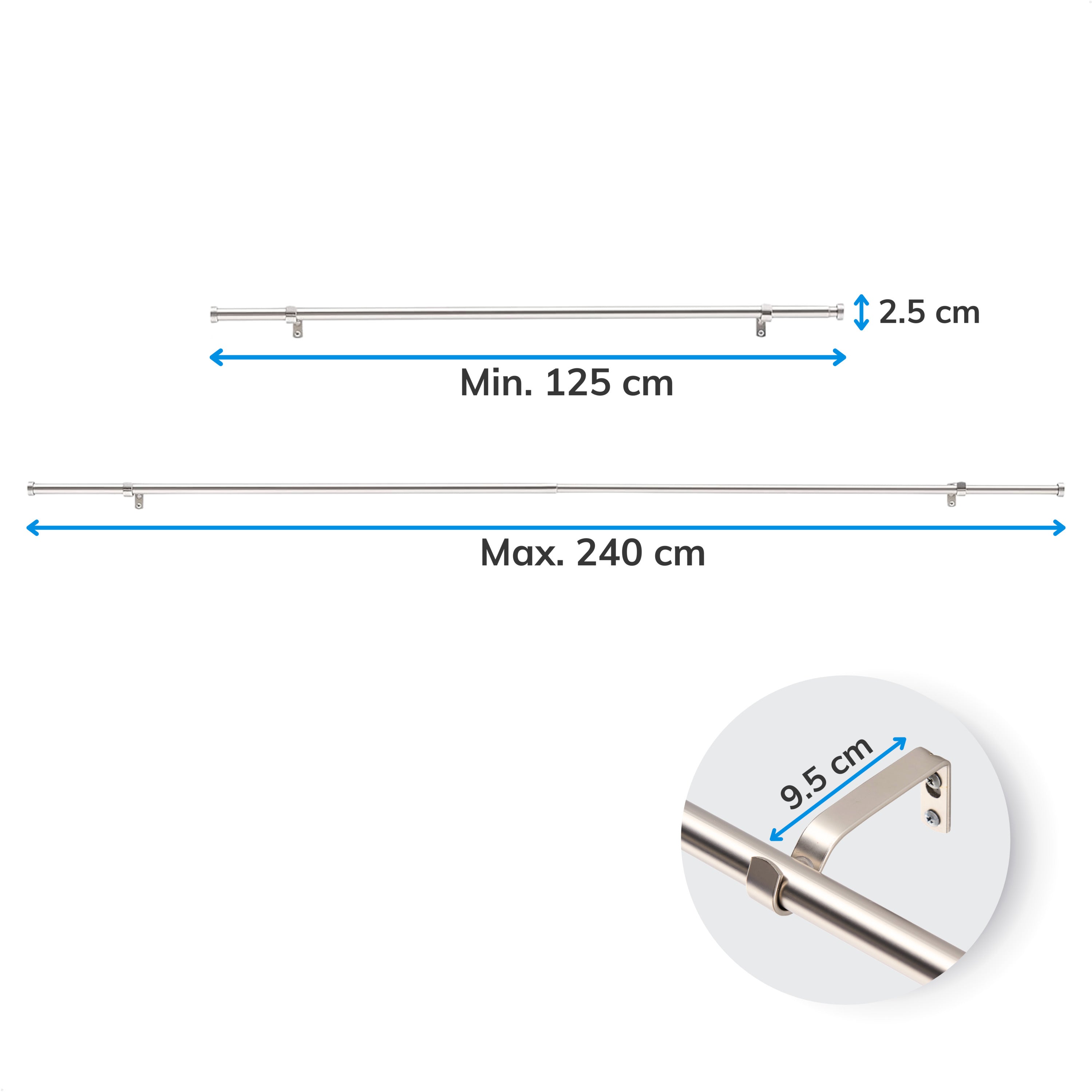 Gordijnroede voor Gordijnen - Uitschuifbare Gordijn Rail - Stang van 125-240 cm - Zilver