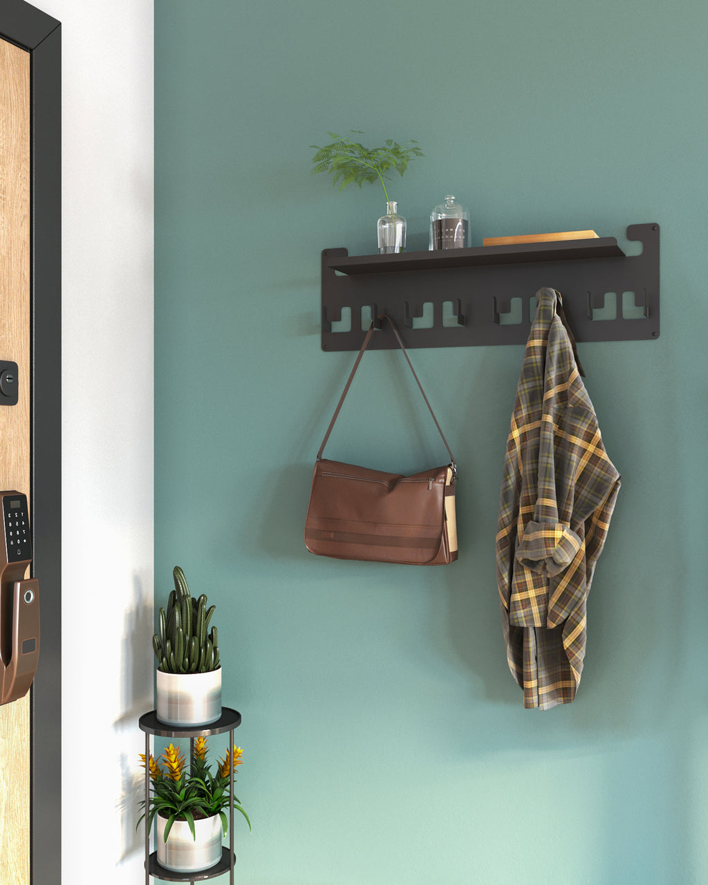 Deze wandkapstok Area van Gorillz is ruimtebesparend en daarom een aanwinst in huis. De 8 stevige haken zijn verdeeld over een breedte van 70 cm. Niet alleen hoofddeksels, maar ook andere kleine spullen zoals sleutels zijn handig neer te leggen op de hoedenplank. De kapstok is gemaakt van hoogwaardig duurzaam metaal en erg makkelijk te monteren. Kies voor een zwarte of witte variant en geef met deze wandkapstok een moderne touch aan je ruimte! Eigenschappen: