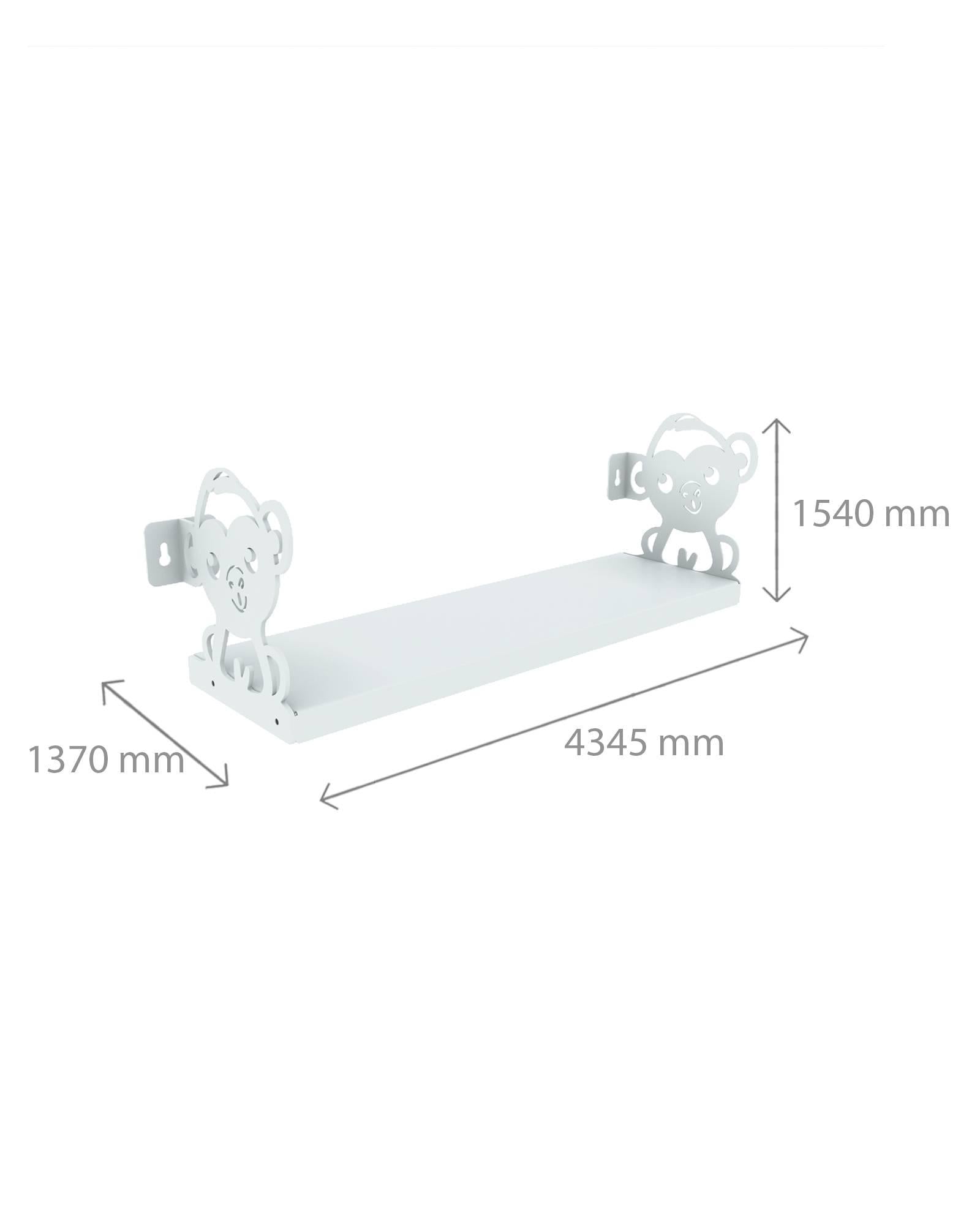 Deze Monkey Boekenplank,plankendrager heeft een lengte van 43 CM, breedte van 13 CM en hoogte van 17 CM. Er past zeker leuke kinderboeken als het ware in de plankendrager waardoor je een leuk speels effect krijgt en gelijk een boekensteun hebt.