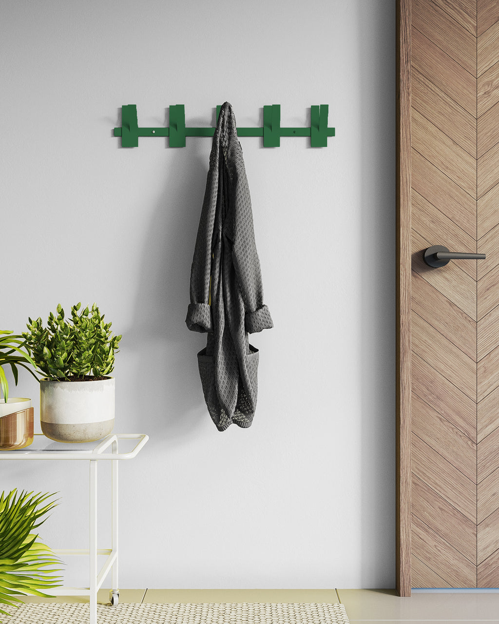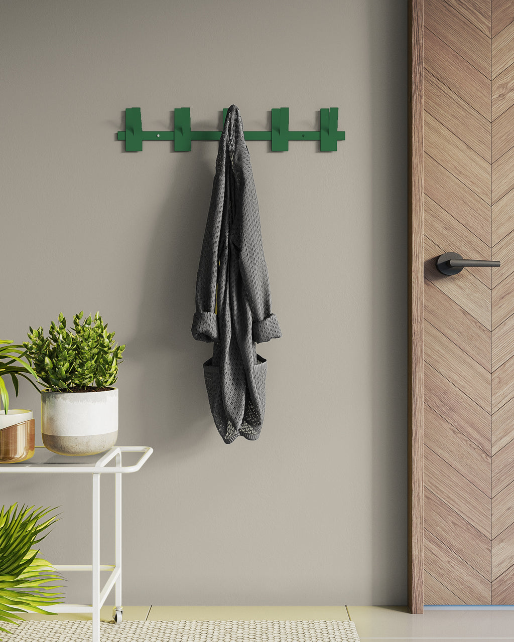 De Incision is gemakkelijk te installeren en weer te verwijderen, waardoor u alle vrijheid heeft om de kapstok precies bij uw wensen aan te laten sluiten. Plaatst u hem in de gang, op een deur, of boven de trap? De ophang-mogelijkheden zijn eindeloos!